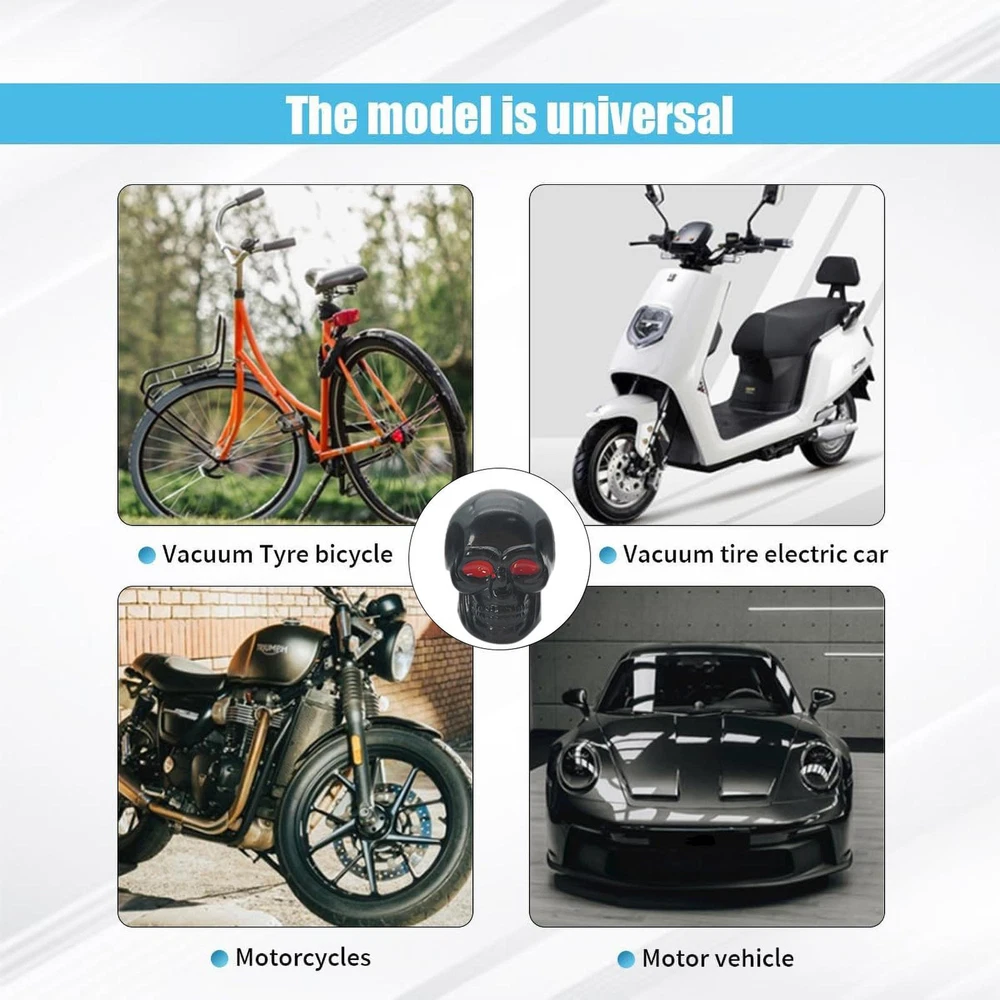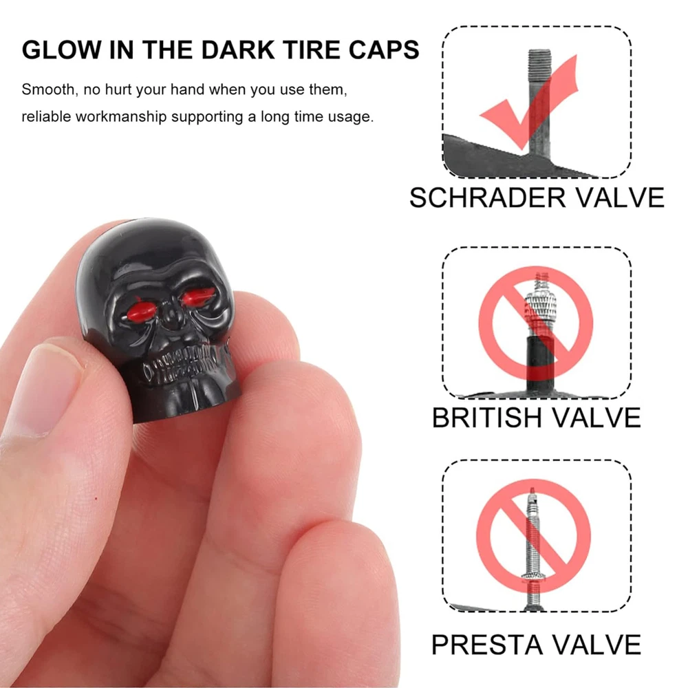 Car Motorcycle Wheel Tire Valve-Stem Caps Skull Univeral for Auto Styling 4 Pcs Stylish Upgrade: Elevate your vehicle's aesthetics with these skull-shaped tire valve caps; a unique design that adds a cool, stylish appearance, perfecting your car's decoration. Effective Protection: Ensuring a tight seal with a rubber gasket, these Skull Tire Valve Caps shield your valves from dust, rain, and debris, preventing leaks for reliable performance. High-quality Material: Constructed using excellent ABS material, these skull tire valve caps offer long-lasting protection for your valve stems. Their excellent durability means they won't wear out easily, providing reliable defense against all manner of daily wear and tear. Easy Installation: Easily secure your tires with Skull Valve Caps that install in seconds, ensuring they stay tight and never loosen. It is easy to install. Wide Range of Applications: Expertly designed to guard against leaks, these Skull Tire Valve Caps are ideal for ensuring your valves are secure; perfect for a wide range of vehicles, from cars to bikes. Add some attitude to your ride with our Skull Valve Stem Caps! Made from durable ABS material, these skull-shaped caps come with a rubber gasket and can be easily installed in just a few seconds. Protect or replace those old, boring valve caps with a touch of fierce style. Specification: Name: Skull Tire Valve Caps Material: ABS+copper core Size: 0.86x0.63 inches Product List: 4 * Skull Tire Valve Caps Notes: Due to different lighting and screen settings, the product color may be slightly different from the picture. Due to the difference in manual measurement, please allow a 1-3cm difference in size. 1.You can make a Credit payment via Paypal.Paypal will let you use MasterCard,Visa to pay. 2.Payment should be completed within 5 days after auction closed, or unpaid dispute will be filed for an closing auction.An unpaid case will be filled after 4 days. ● We strive for 100% customer satisfaction ! ● Positive Feedback is very important to us. ● We hope that you contact us immediately BEFORE you give us neutral or negative feedback, so that we can satisfactorily address your concerns. ● We promise to offer the lowest price and high quality produce. Dear buyers : ● Welcome to my store ! ● Your satisfaction is our top goal,we appreciate your patronizing. ● If you have any questions, please contact us before leave negative or neutral feedback, we will try our best to solve the issue to your satisfaction, thanks ! ● If you are satisfied with our service, please rate the details of the transaction (Detailed Seller Ratings) on eBay. ● Please always talk to us via ebay Message. ● We appreciate your business and look forward to growing our e-Bay sales with satisfied customers.