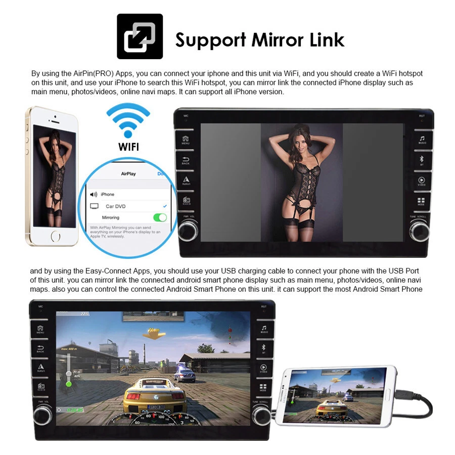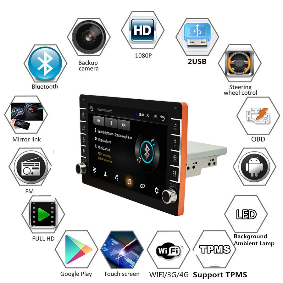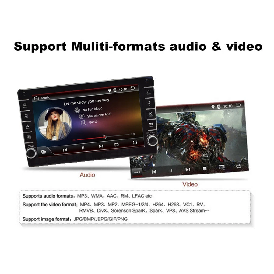 Home Payment Shipping About us Contact us Store Categories Store Categories Other Details Quad-core Android 8.1 Car Radio 9 Inch MP5 Multimedia Player GPS Wifi FM USB Single Din Car Stereo 1+16GB With Knob Button Specifications This vehicle list is just for your reference, please check size before purchase. Thank you very much. General - Power Supply: DC 12V (allowance range: 10.8-14.5V) - Max. Current: 10A - Screen Size: 9 inch - Front panel Size: 250mm(Top width)*146mm(High)*241mm(Bottom width Type - Single Din,Height Adjustable,more universal. New model with knobs and keys System - Operation System: Android 8.1 - CPU: Quad Core - GPU: Quad Core - ROM: 16GB - RAM: 1GB - Extended USB: Support USB Disk up to 32GB Display - Touch Screen: Yes - Resolution: 1024*600 - Capacitive or Resistance Screen: Capacitive - Built-in Clock and Calendar: Yes, show real time and can use network-provided time - Main Menu Status Bar display: Can be changed to Music/Radio/BT-Stereo Player and Clock/Date/Week - Change Apps-Icon Position: Yes WiFi/3G/4G - Connector: On the Back - WiFi: Built-in WiFi Modem, support 802.11b/g/n - Supports 4G & 3G Internet (4G Dongle and 3G Dongle are not included) Internet - Explorer: Opera, UCWeb, SkyFile, Dolphin and more explorer for your selection - Online Entertainment: Online Video, TV, Movie, Music, Radio, Video Chat - Online Navigation: Online Google Maps Navigating - Online Games: Yes, online play or you can download it from google play store - Online Communication: WeChat, Twitter, Facebook, Skype, Gmail, Whatsapp etc. - Read and edit Office Software: Yes, support Word, Excel, Powerpoint, PDF, TXT Audio - Format: MP3/WMA/MP2/OGG/AAC/MA4/FLAC/APE/WAV etc. Could play via song list - Record: MP3, WMA - Other: LRC synchronized display; ID3 search; Search by files; Album Picture; User-defined audio effect - Audio IC: Top Global Cirrus IC, independent audio decoding - SNR: Noise rations:=90dB Video - Format: Support AVI (H.264, DIVX, XVID), RM, RMVB, MKV (H.264, DIVX, XVID). WMA, MOV, MP4 (H.264, MPEG, DIVX, XVID). DAT (VCD format). VOB (DVD format). PMP, MPEG, MPG. FLV (H.263, H.264). ASF, TS, TP, 3GP, MPG etc. =30 formats, Playing internet video directly (while downloading) - Play: Up to 1920*1080 Pixels, 30Mb. Fluent play without light spot GPS - Operation System: Android 8.1 - Support Maps: IGO, Sygic, Google Map etc. - Voice Guidance: Yes - Support 2D/3D Map Views: Yes - Dual Zone: Yes, navigating while music playing - Online Navi: Yes, support google maps online navigating Bluetooth - Hands Free: Yes - A2DP (Bluetooth Stereo Music): Yes, can play stereo music through Bluetooth - Bluetooth Music Control: Yes, play/pause/previous/next - PB-Download: Yes, can download phonebook from mobile to this unit - PB-Search: Yes, can use the first letter to search contact member in PB-Listings - Calling Records: Yes, Dialed Call, Received Call, Missed Call - Setup: Auto Answer, Auto connect, Device name - Built-in Microphone: Yes, on the front panel Radio - FM Tuning Range: 87.5-108MHz - FM Increment: 0.05MHz(EU)/0.1MHz(US) - FM Area: Europe/USA1/USA2/Japan/Russia - Preset Stations: 30(FM 3*6, AM 2*6) USB - Position: 2 USB Port, can be connected with Media/Camera/DAB+ Box/Smartphone - Play MP5 Videos: Yes, can play RMVB Videos up to 1080P - Touch Music Title to play directly: Yes DVR - Built-in Car Recorder App: Yes, just connect a USB Camera to use this function - Support HD CCD Camera: Yes - Play recorded Video directly: Yes - Storing Position: Nand Flash/GPS Card/SD Card/USB Storage can be changed DAB(+)-IN - Support(DAB+ BOX NEED TO BUY SEPARATELY) DTV-IN - Built-in Digital TV Tuner: No (you can us to buy it together) - External Port for TV Box: Yes, Support DVB-T/DVB-T2/ATSC/ISDB Box - Power Supply to TV Box directly: Yes, you can connect our TV Box to achieve this function - Touch Control the TV Box on unit: Yes, you can connect our TV Box to achieve this function Additional - Textbook: Could change font, font color, background color, bookmark, reading E-book while listening music - Photo Viewer: Support JPS, BMP, PNG, GIF etc. format. play by revolve, Powerpoint Support 4096*4096 Pixels - Wallpapers: 5 live wallpapers, 17 standard wallpapers, support DIY wallpaper from Gallery - APK Installer: Support Android Package installer - Support Torque Pro(OBD2 &Car): Yes, you can connect a Bluetooth OBD2 Scanner Tool to use this function - Support Mirror Link function: Yes, support screen mirroring from iPhone and android smartphone - Support TPMS: YES (Not Included, you can us to buy it together) Setup - WiFi/Hotspot/Bluetooth: Yes - Brightness level adjustable: Yes - Wallpaper: Wallpapers/Live Wallpapers/Gallery - Sound: Key Tone & Volume - Storage: Display Internal Storage/Nand Flash/Connected Device Storage - Apps: Running Apps display/force stop/uninstall - Security: Yes - Accounts: Yes - Languages and Input: more than 70 Languages and choose input method - Backup and Reset: Yes - Date and Time: Setting Date&Time by yourself or choose GPS/network-provided time - Accessibility: Yes - GPS: Yes, GPS application options/monitoring/sound mode/mixing ratio - Driving safety: Watching Video, Reversing X-mirror/Volume, Reversing Trajectory/radar Display, Rear view ruler - Amplifier: Rock/Pop/Jazz/Classic/Flat/Voice/Custom - Steering Wheel Control: Yes - About Device: Display Parameter Info. Input - AUX Video In - Rear-View Camera Video In - AUX Audio In: R/L - DTV Box In - DAB+ Box In - Car DVR In - GPS Antenna In Output - Video Out - Audio Out - Surround Stereo Out: 4*50W Accessories -1 x Car MP5 -1 x GPS Cable -2 x USB Cable -1 x Power Cable -1 x RCA Cable -1 x Camera Input Cable Shipping Policy Payment Method Returns Policy Shipping Policy Payment Method Returns Policy Home Payment Shipping About us Contact us Home Payment Shipping About us Contact us Store Categories Store Categories Other Details Quad-core Android 8.1 Car Radio 9 Inch MP5 Multimedia Player GPS Wifi FM USB Single D