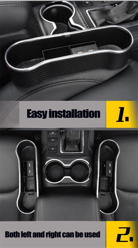 Add our listing to Watchlist Or Add to Cart , you will get more discount Features: 1. Classic fashion, elegant appearance. 2. General design, suitable for most cars, easy installation. 3. Durable and long service life. 4. Increasing the storage space in the car, it can store car key, bill, mobile phone, parking card, wallet, cigarette box and so on. 5. The design of the product can also effectively block the gap to prevent the occurrence of things falling into the seating gap. Specification: -Type: Car Storage Box(dual USB charging box) -Placement on Vehicle: Front, Left, Right (Universal to left and right) -Colour: Black (carbon fiber) -Size:As shown -Material: ABS plastic Note: -The color of the product varies somewhat due to different screen. -Please allow 0.5-1 inch difference due to manual measurement.(1 inch=2.54cm) The package includes: 1Pcs Dual USB Charging box eBay Cross Border Trade powered by ChannelEffect
