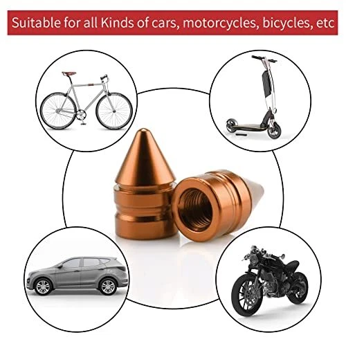 30 Days Return Policy Fast Delivery Trusted seller Car Tire Valve Caps, 4 Pieces of Universal Aluminum Alloy Tire Trim Accessories Dust Tire Covers for Cars, Trucks, SUVs and Motorcycles(Orange) Product Description High quality: The valve stem cap is made of high quality aluminum alloy, with fine workmanship, oxidation and wear resistance. T is a rubber seal inside that won't leak on a long, solid drive. It is a stable tire pressure cap and is a great car part. Personalization: The appearance of the tire cap adopts a pointed design to facilitate the fastening of the tire rod dust valve. It can be used as a good decoration for car tire cover accessories, improve the appearance of the car, and is a car accessory gift for men. Easy installation: Simply screw the valve cover along the thread onto the valve stem, and the air valve cover will not be damaged during installation. Universal to most cars, trucks, motorcycles and bicycles. Product size: A pack of 4 pieces, the tire cap is 0.98 inches long and 0.11 inches wide. The installation is simple and convenient, and the installation can be completed by tightening along the thread. Service: If you have any questions about the product, please contact us in time and we will provide you with a satisfactory solution. Shipping Returns Payment Shipping Shipping is FREE to all addresses other than APO/PO boxes in the lower 48 states. All our stock ships from US-based warehouses. Shipped via USPS or UPS (depending on location and package weight) Unless stated otherwise, all orders will ship within 24-72 hours of your payment being processed. Check our feedback to see the great reviews of FAST shipping we offer. Returns As our valued customer, we will do our best to make sure the product you receive arrives to you on time and as expected. If you are not satisfied with your purchase, please contact us within 30 days of receiving your order to process a return. Payment We currently accept payment via eBay managed payments only. Once payment is cleared, we will dispatch your shipment within 1-3 business days. Please refer to the "Shipping" tab for more information regarding shipping speed to your destination.