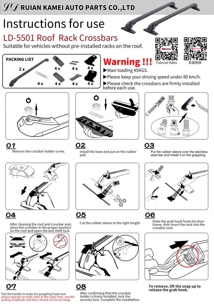 NOTE: Compatibility only for recommended , Pls making sure your car’s roof flat width is 110-114 cm !!!Before buying, please measure the length of your car, because the return of size problem will cause us great losses ,Please excuse !! Features : Refitfullrange Car Top Roof Rack Cross Bar 43.3" Luggage Carrier Adjustable Aluminum-Universal NOTE: Compatibility only for recommended , Pls making sure your car’s roof flat width is 110-114 cm !!!Before buying, please measure the length of your car, because the return of size problem will cause us great losses ,Please excuse !! Features : Designed for Cars that Do Not Have Raised Roof Rails Already Fitted Lockable Anti-Theft Design - 2 Locks Per Bar (includes keys) Suitable for 4 or 5 Door Cars Only (not suitable for 3 door cars, van or large 4x4s) Metal Brackets Clamp Under Door Recess - Includes 2 Clamp Types (pictured) Ratchet Tensioners Allow Easy Adjustment Always Ensure Bars Are Securely Fitted Before Driving Light Assembly Required Specification : Color : Black Roof Bars Size : Details show in the picture Bar Length : 1m Suitable for car roof flat width is 110-114 cm (Not included both side just the roof flat width !!!) Only Fits 110 - 114cm (43.3 - 44.8inch) inner distance between car's rain gutters. Quantity : Supplied in Pairs Max Load : 75kgs (load must be uniformly distributed across the bars) Package Included: 2 x Car Roof Bars (2 keys included) Item Specifics Type Roof Rack Brand refitfullrange Manufacturer Part Number RF1051390LL Placement on Vehicle Roof Surface Finish Aluminum bar, base feet, stainless steel brace Length 100cm / 39.37in Material Aluminum , plastic, stainless steel Fitment Type Direct Replacement Contents of the package 2 x Car Roof Bars (2 keys included) Color Black Suitable For car roof flat width is 110-115 cm Manufacturer Warranty 2 Years Quantity Supplied In Pairs Max Load 75Kgs(165lbs) Bar Length 1M Payment We accept Paypal,Google Pay,VISA,Master Card,American Express,Discover,eBay Mastercard payment. We process your order within 3 business day upon payment(note: NOT counting holidays or weekends). Local pickup NOT available at this time. Shipping Product will be shipped within3 business days after full payment is received and verified. Delivery Time is about 3-7 business days to most of countries. All domestic orders will be shipped via USPS or FedEx from our US warehouse and usually arrives to your door in about 3-5 business days. We ship the package to your shipping address in eBay instead of the one in PayPal. Please tell us your shipping address if it is different from the one in eBay. The tracking number will be given for the customer to check the shipping status online (registered or faster service only). We are not responsible for any wrong or undeliverable addresses. Please verify and update your shipping address on eBay during checkout. Returns Please contact us first when return, exchange and refund is required. Any direct return of purchased items will not be processed. Change-of-mind return can only be accepted within 7 days after purchase. All other returns can be accepted in 30 days. We will closely examine the condition of the returned items and will not issue any refund/exchange before we make sure the items are in their original neat conditions. Feedback Our office hours are every day except Sunday,Before leaving us neutral or negative feedback, please contact us first. We will do everything we can to give you a satisfying solution. Please don't open case via eBay or PayPal. Please don't open any return request before contact us. We do our best to resolve any issue. Leaving negative feedback and low ratings doesn't get things solved. So please talk with us and we will not let you down. About Us We are committed to providing you provides high quality Trunk Spoiler Wing, Front Bumper Lip,Rear Lip , side skirt,Window shutter cover,Soft top,Rain Guard,etc.Will Dramatically Improve The Appearance For Your Love Car.You choose to buy in our store is to choose high-quality products and professional quality services. Let's class up your love car and make it stands out from the crowd. Refitfullrange DESCRIPTION PAYMENT SHIPPING RETURN POLICY CONTACT US Shop Category Store Home Exterior trimming parts ◈ Rear Trunk Spoiler Wing ◈ Car Soft Top ◈ Front Bumper Lip ◈ Car Side Skirt ◈ Front Bumper Trim ◈ Rear Bumper Trim ◈ Automobile Hub Cover ◈ Rain Guard ◈ Roof Rack Cross Bar Carrier ◈ Auto body trim panel ◈ Body trim ◈ Fender Flares ◈ Front Grill Other Hot Item For Dodge Durango 2011-2019 2020 Fender Flares Wheel Arch Front Driver Side USD 39.79 Fit For Benz C-Class C300/C350 08-11 Front Bumper Lower Grille Replacement Grill USD 25.92 Black Steel Front Bumper Reinforcement Face Bar For Ford Mustang 2015 2016-2021 USD 39.03 For 2016 2017 2018 Chevrolet Silverado 1500 2Pcs Front Bumper Brackets USD 74.25 Parking Lights Turn Signals For 2001-2004 Toyota Tacoma Side Marker Corner LH+RH USD 22.81 Car Top Roof Rack Cross Bar 43.3" Luggage Carrier Adjustable Aluminum-Universal NOTE: Compatibility only for recommended , Pls making sure your car’s roof flat width is 110-114 cm !!!Before buying, please measure the length of your car, because the return of size problem will cause us great losses ,Please excuse !! Features : Designed for Cars that Do Not Have Raised Roof Rails Already Fitted Lockable Anti-Theft Design - 2 Locks Per Bar (includes keys) Suitable for 4 or 5 Door Cars Only (not suitable for 3 door cars, van or large 4x4s) Metal Brackets Clamp Under Door Recess - Includes 2 Clamp Types (pictured) Ratchet Tensioners Allow Easy Adjustment Always Ensure Bars Are Securely Fitted Before Driving Light Assembly Required Specification : Color : Black Roof Bars Size : Details show in the picture Bar Length : 1m Suitable for car roof flat width is 110-114 cm (Not included both side just the roof flat width !!!) Only Fits 110 - 114cm (43.3 - 44.8inch) inner distance between car's