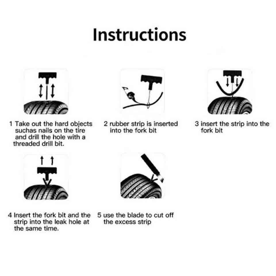 Home Payment Return Policy About us Contact us Details Car Tubeless Tyre Tire Puncture Repair Plug Repair Kit Needle Patch Fix Tool Set Details Car Tire Repair Tools Kit with Rubber Strips Tubeless Tyre Puncture Studding Plug Set for Truck Motorcycle Features: 1.Emergency Vehicles Puncture Repair Kit for Tubeless Tires. 2.The Car Tyre Repair kit will allow you to mend punctures quickly and effectively. 3.Durable Plastic Handles providing great grip. 4.Essential for Vehicles with Tubeless Tires. 5.This Rasper Tool allows Tire hole widening and cleaning. 6.Needle Tool allows Tyre Rubber Strip insertion. 7.Useful Tool to keep in the car with spare wheels. How to use: 1.Remove object that causedthe puncture. Insert the rasp tool into hole and slide up and down to roughenand clean the inside of the hole 2.Coat needle tool withrubber cement and slide up and down into hole to lubricate area. 3.Insert a repair plughalfway through slit of needle. 4.Gently push needle throughhole until about half inch is left of the plug. 5.Pull split eye tool leavingthe plug inserted into hole. 6.Trim excess plug stickingout and let dry. Inflate tire and test for leak Package Content: Emergency Tubeless Tyre Tire Puncture Repair Tool Kit includes: 1x Rasper Tool. 1x Needle Tool. 1x Rubber Solution. 5x repair Strips. Home Payment Shopping About Us Contact Us Copyright©2018 datacaciques Home Payment Return Policy About us Contact us Details Car Tubeless Tyre Tire Puncture Repair Plug Repair Kit Needle Patch Fix Tool Set Details Car Tire Repair Tools Kit with Rubber Strips Tubeless Tyre Puncture Studding Plug Set for Truck Motorcycle Features: 1.Emergency Vehicles Puncture Repair Kit for Tubeless Tires. 2.The Car Tyre Repair kit will allow you to mend punctures quickly and effectively. 3.Durable Plastic Handles providing great grip. 4.Essential for Vehicles with Tubeless Tires. 5.This Rasper Tool allows Tire hole widening and cleaning. 6.Needle Tool allows Tyre Rubber Strip insertion. 7.Useful Tool to keep in the car with spare wheels. How to use: 1.Remove object that causedthe puncture. Insert the rasp tool into hole and slide up and down to roughenand clean the inside of the hole 2.Coat needle tool withrubber cement and slide up and down into hole to lubricate area. 3.Insert a repair plughalfway through slit of needle. 4.Gently push needle throughhole until about half inch is left of the plug. 5.Pull split eye tool leavingthe plug inserted into hole. 6.Trim excess plug stickingout and let dry. Inflate tire and test for leak Package Content: Emergency Tubeless Tyre Tire Puncture Repair Tool Kit includes: 1x Rasper Tool. 1x Needle Tool. 1x Rubber Solution. 5x repair Strips. Home Payment Shopping About Us Contact Us On Dec 2, 2025 at 18:54:53 PST, seller added the following information: