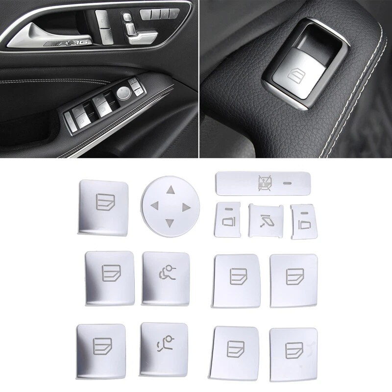 Car Window Glass Lifting Button Sticker Trim For B C GL Class Features: Professional expecially for A B C W204 W212 GLA GLK/ GL/ class button and the other interior trim perfectly color raises the grade of the interior overall look, more exquisite & presentable Each bottom cover piece has a corresponding double sided sticker, cleane off each button, pull off the sticker protective backing.And then put the double sided sticker in each button cover and pressed onto the buttons and prevents your car from finger nails and keys scratches. Covering the existing scratches. Decorate interior appearances. Please check carefully before buying your car, the door button is the same as our products, if different, please do not buy it For A Class 2013-2017 For B Class 2012-2016 For C-Class 2010-2014 For Class 2010-2015 For GLK Class 2008-2014 For Class 2012-2014 For GL Class 2013-2014 For Class G500 2013 For GLA Class 2015-2016 Specifications: Condition: ABS Color: Silver Quantity: 14 Pcs/1 Set Note: Please allow 1-3mm error due to manual measurement. pls make sure you do not mind before you bid Due to the difference between different monitors, the picture may not reflect the actual color of the item. Thank you! Package Contents: 14 Pcs x Lift Button Sticker