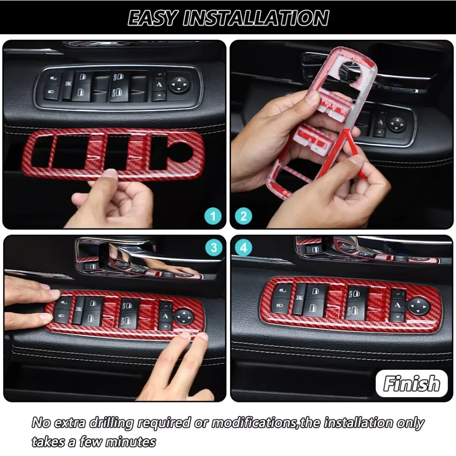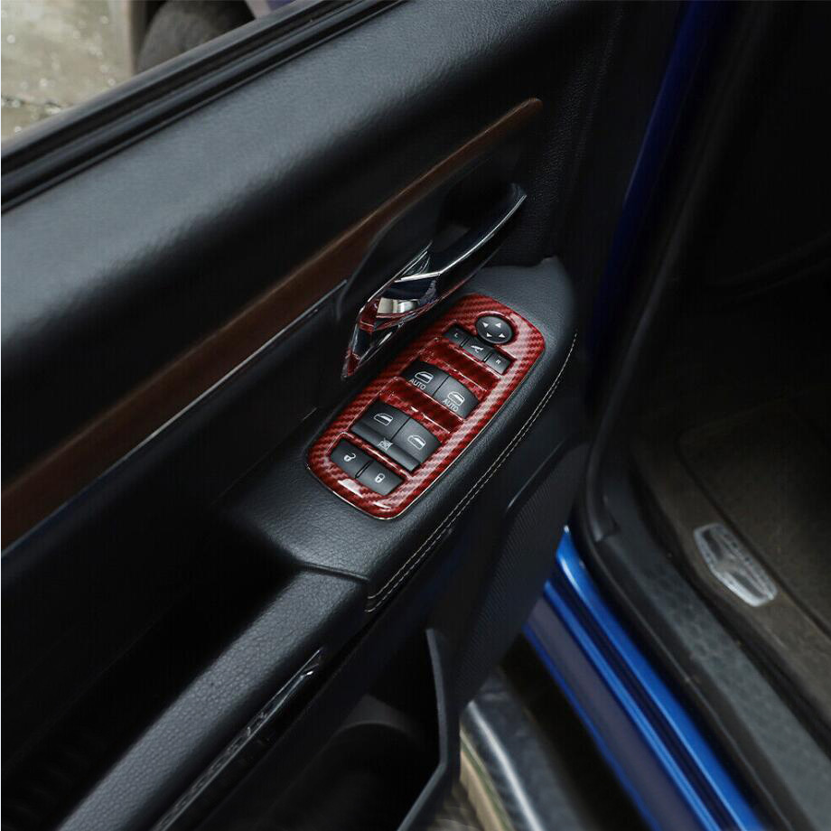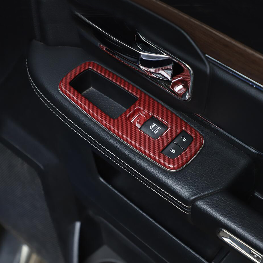 Car Window Lift Switch Cover Trim For Ram 3500/2500 11-24 Accessories Red Carbon
