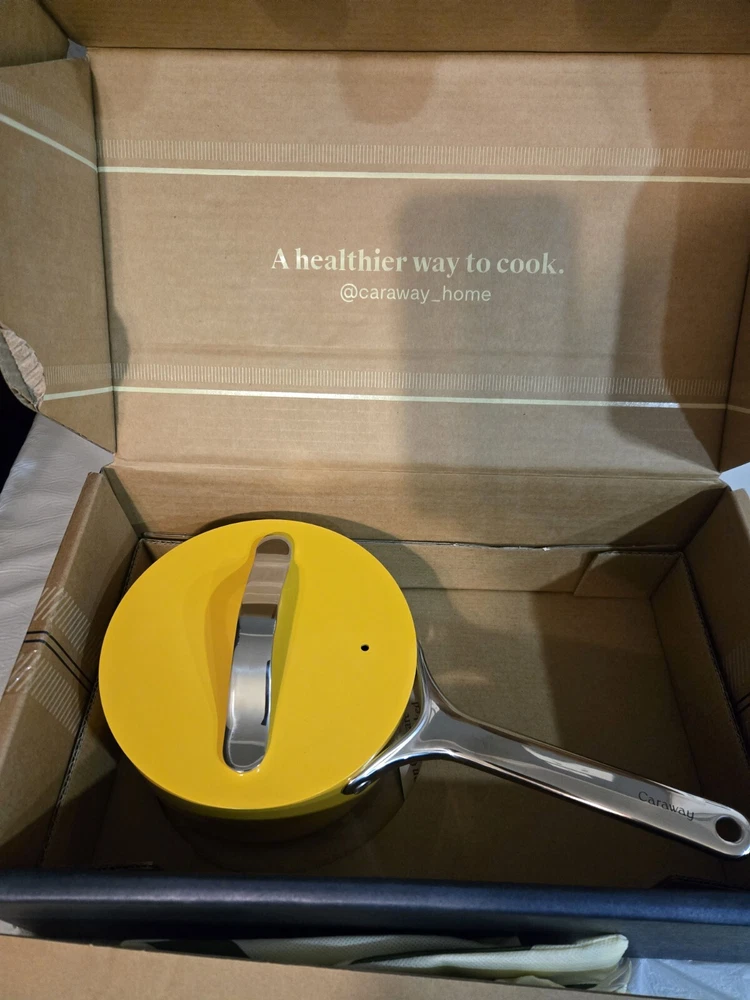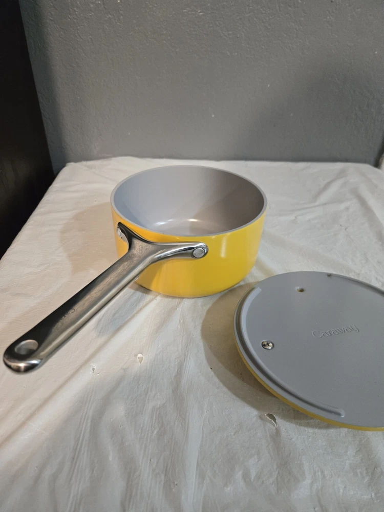 Open Box Upgrade your cooking game with this Caraway Nonstick Ceramic Sauce Pan with Lid. This versatile pan is compatible with induction, electric, and gas stove types and features a 1.75 qt capacity, perfect for your sauce and soup cooking needs. Its yellow color adds a pop of fun to your kitchen, while its ceramic material ensures durability and safe cooking. The pan's non-stick surface makes cooking and cleaning a breeze, and the included lid helps retain heat and flavor. This saucepan is a must-have addition to your cookware collection, and with its brand reputation, you can trust its quality. Get ready to enjoy healthy and delicious meals with this Caraway Nonstick Ceramic Sauce Pan with Lid.