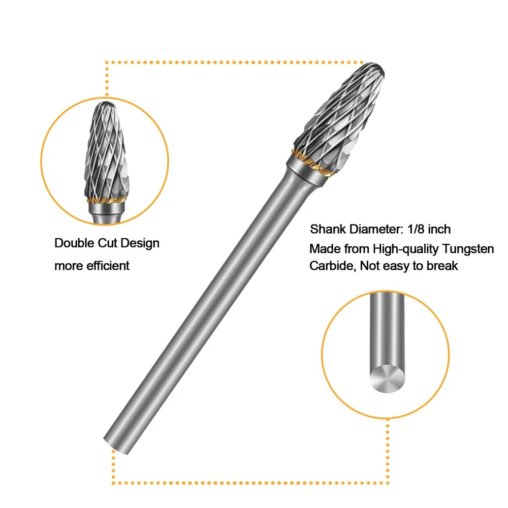 Carbide Burr Set Die Grinder Bits Rotary Tool Bits 1/8" Shank 10 PC Double Cu...