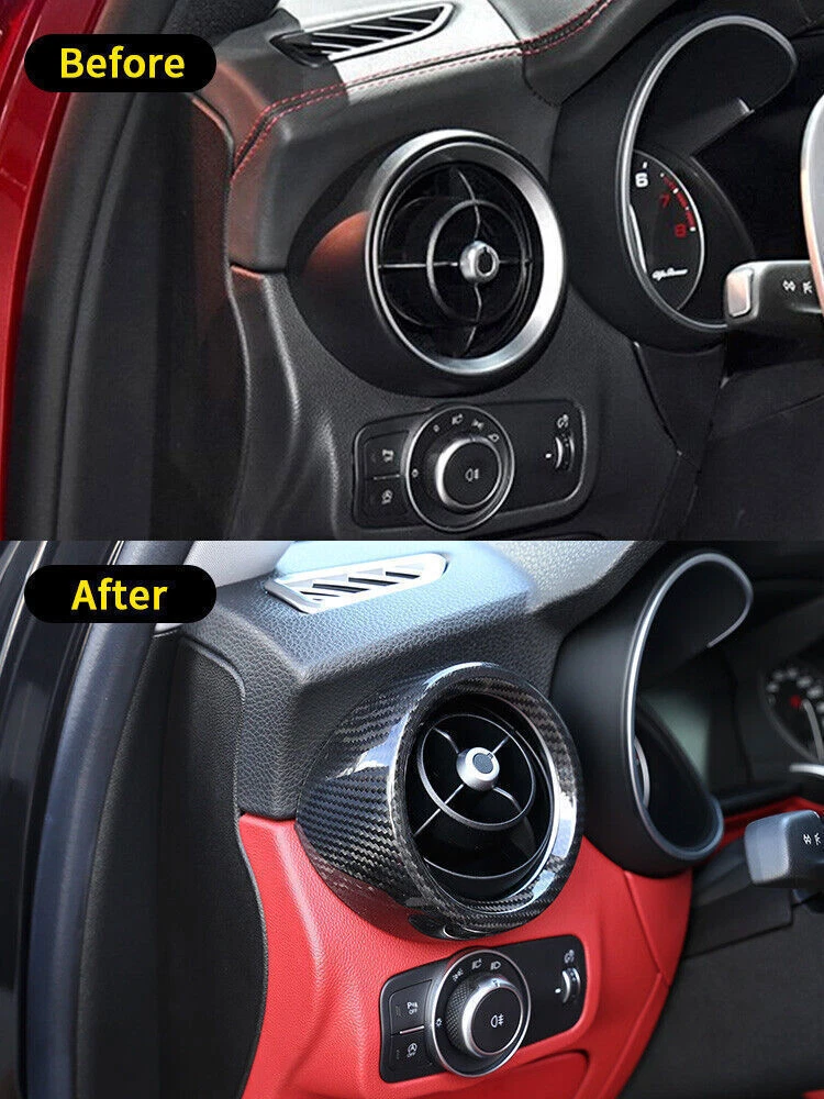 Carbon Fiber Front Air Vent Outlet Ring Trim for Alfa Romeo Giulia 2017-2021 Carbon Fiber Front Air Vent Outlet Ring Trim for Alfa Romeo Giulia 2017-2021 Fitment: For Alfa Romeo Stelvio【2017-2020】 1• Made of 100% Real Carbon Fiber with Best Quality, improves your vehicle's interior styling, ultra light weight. 2 • Fits like OEM, gives your car a unique LUXURY look. 3 • Condition: 100% Brand New with High Quality 4 • Color: Carbon Fiber Glossy Black 5 • Material: Carbon Fiber CF Materials Reminder: If your vehicle model year is in the beginning or end of the listed Manufature Year, be sure to provide us with the photo of your existing car. • Add on type, easy to install with Double-sided Tapes which was included, you don't need to remove the original part of your car. • Most of the items are After-market Parts, therefore, No installation instruction will be included, professional installation are highly recommended. Payment Delivery details Terms of sales About us Contact us Payment We accept Paypal only. We only ship to your Paypal's address, please ensure your shipping address on your paypal account is correct. If you have any change for address, please inform us in ebay note. Payment must be fulfilled within 7 days after purchase. All non-paying orders will receive an unpaid reminder from eBay. Delivery details We will ship the goods as soon as we receive your payment.(usually within 5 business day). All items will be shipped to buyers E-bay address. If your E-bay address doesn't match the desired delivery address, please contact us immediately. The estimated delivery time is 8-16 business days for the US. However, for certain European and South American countries, it may take up to 6-8 weeks due to thorough customs inspections. We offer worldwide shipping. If you plan to purchase multiple products at once, please contact us. Terms of sales Items can be returned within a 30-day period. Please make sure that the item is unused, in its original packaging, and in the same condition as when you received it. To initiate a return, please get in touch with our customer service team and provide them with the necessary details, including the order number, reason for return, and any supporting documentation (such as photos or videos, if applicable), before initiating a return request. The cost of return shipping will be the responsibility of the customer, unless the return is a result of a defect or an error on our part. For a secure return, we recommend using a reliable shipping method with tracking. Refunds will be processed through the original payment method. Please allow one business day for the refund to be reflected in your account. If the item you received is damaged or faulty, please notify us immediately. We may require additional information or evidence to facilitate the return or exchange process. About us Feedback is important to all of us participating in the eBay community. We have been working hard and strive for 100% customer satisfaction. We will leave a positive feedback immediately after payment is received. We appreciate a positive feedback as much as you do. If for some reason there is any issue with the purchase,please contact us prior to leaving feedback. We will be glad to work together and provide a satisfying solution. Contact us If you are not satisfied with our products or services, please contact us before leaving negative feedback. Good communication helps buyers and sellers to solve any problems. We are promising to try our best to provide the best service and 100% satisfaction for valuable buyer like you.