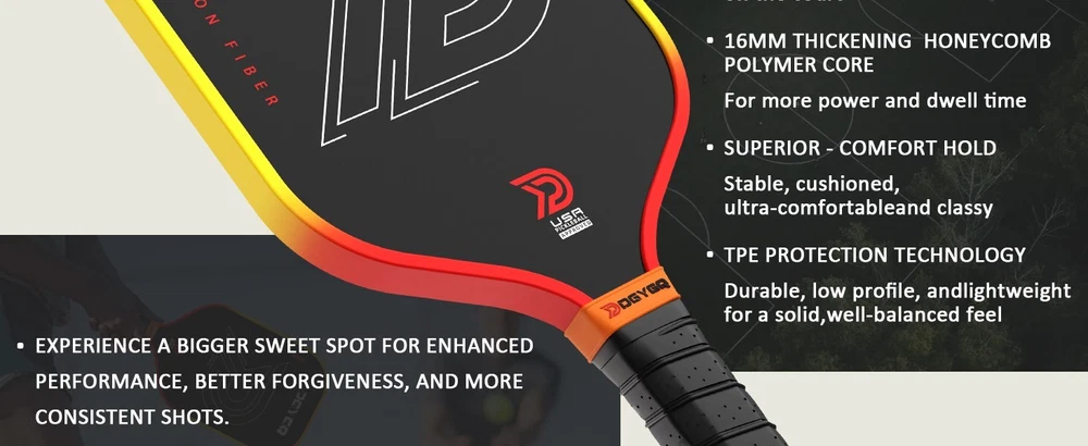 The DGYGQ brand offers a professional carbon fiber pickleball paddle with a unique honeycomb core design, specifically model B0DTF3S248-df-e1p. This advanced pickleball racket is designed for high performance, combining lightweight durability with a responsive feel for precise gameplay. The carbon fiber material and honeycomb core ensure optimal control and power, making it a top choice for competitive pickleball players looking for a superior paddle.