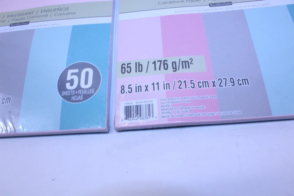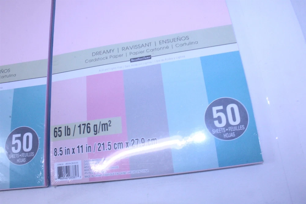 Cardstock Paper 65lb Acid Free 2 Packs Dreamy Multi Color 50 in Each 100 Sheets 8 1/2" x 11" each sheet Items are new in factory packaging, the packaging may have some signs of handling. Most are sealed, all are unused new items. We are committed to providing exceptional customer service, we will answer any questions you may have about our products as quickly as possible. We take care in taking photos to show condition, writing condition descriptions to best of our ability. If you feel we have missed something or your item arrives damaged from transit, please communicate with us and we will get it worked out to your satisfaction. You may be interested in our other eBay listings . - Powered by SixBit's eCommerce Solution