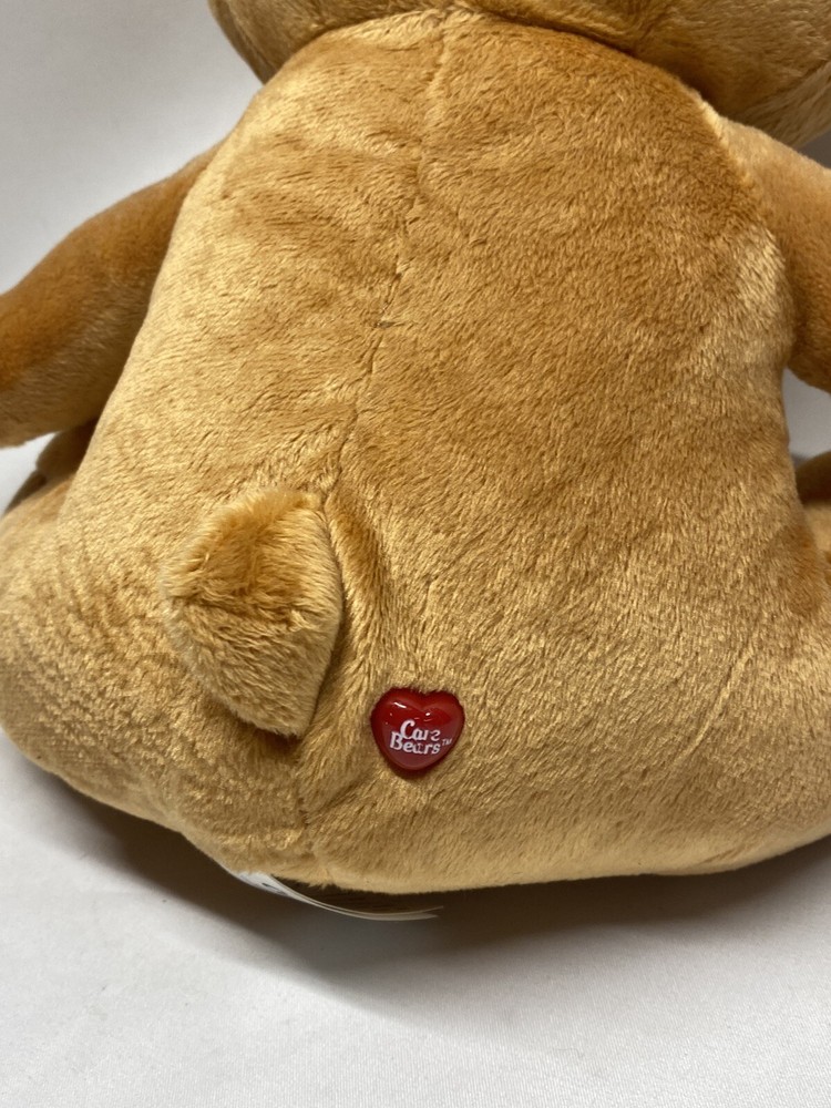 This is a Care Bears Tenderheart Bear plush toy measuring 15 inches. It features a red heart on its tummy, is part of the Care Bears franchise, and was manufactured in 2016. This limited edition stuffed bear is surface washable, representing the character Tenderheart Bear. It is a single unit item and not handmade, suitable for all occasions.