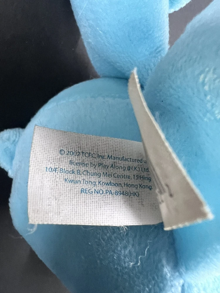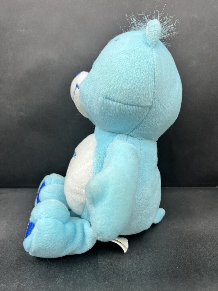 This Care Bears Bedtime Bear plush toy is perfect for anyone who loves the Care Bears franchise. The blue bear is 8 inches tall and made of soft plush material. It features a moon and stars theme, making it ideal for anyone who is a fan of celestial designs. The toy also comes with tags and was manufactured in 2002. It would make a wonderful addition to any Care Bears collection or a great gift for a Care Bears fan.