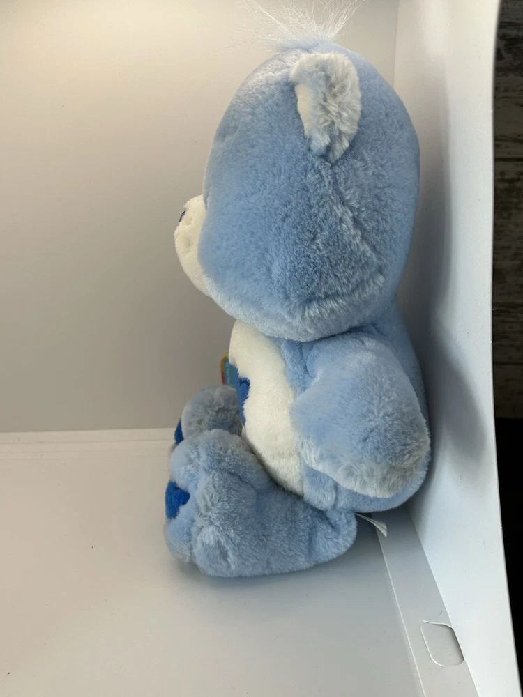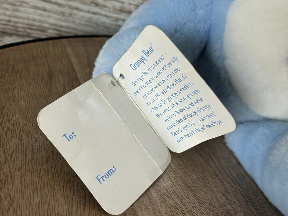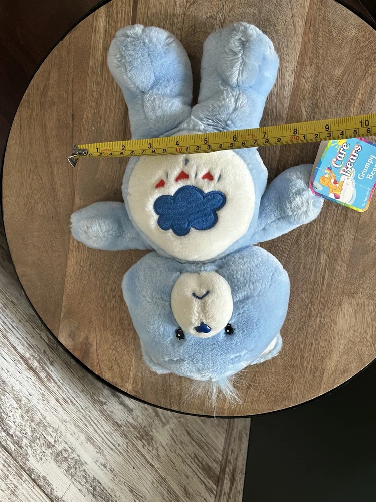 This Care Bears Grumpy Bear plush toy is a must-have for all bear collectors. With its blue bear color and rain cloud design, it is a unique addition to any collection. This 13-inch stuffed toy is made of high-quality materials and features Grumpy Bear's classic grumpy expression. The toy is brand new with tags and was manufactured in 2002. It is an original and licensed reproduction, and is perfect for all occasions. This Care Bears Grumpy Bear plush toy is a great gift for any bear lover, and will provide hours of enjoyment.