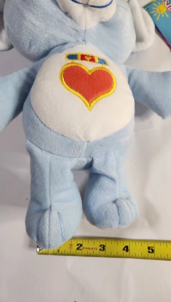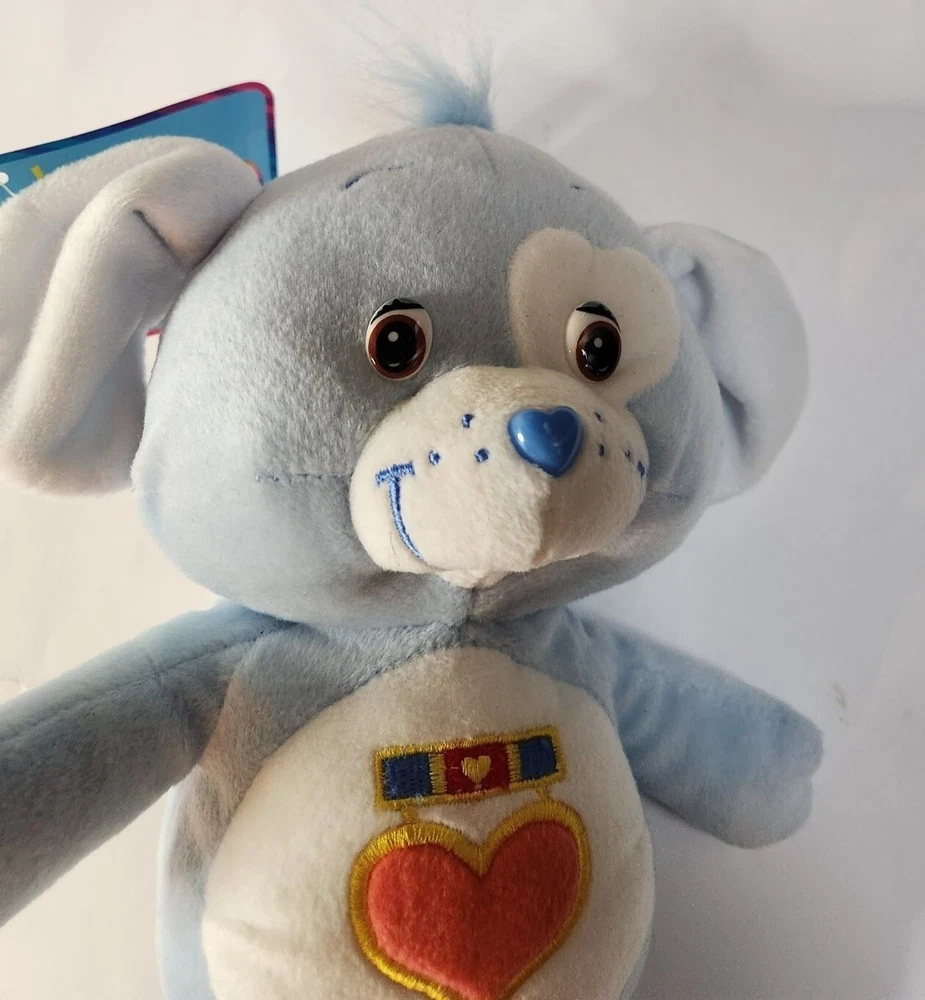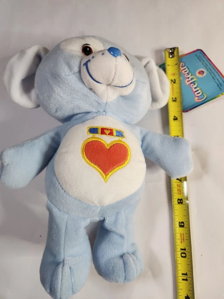 Carebears cousins loyal heart dog plush toy from the Care Bears collection by NAMCO is a delightful addition to any child's playroom. Standing at 9 inches, it features a soft blue exterior with an adorable heart graphic on its tummy. Suitable for children over the age of three. • Soft plush material • Embroidered details • Iconic Care Bears design • Suitable for ages 3+ • Easy to clean Top to bottom = 9 inches.