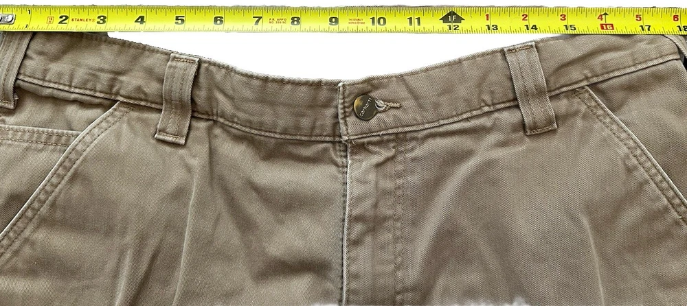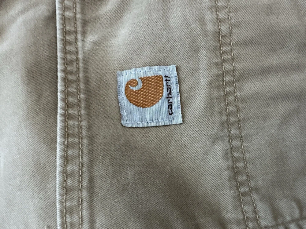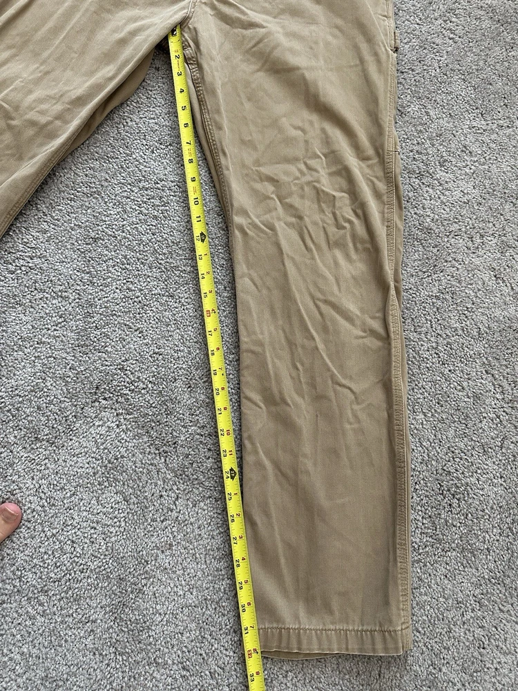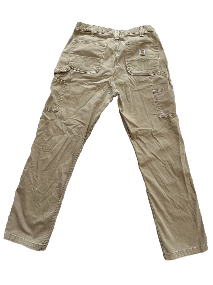 Carhartt Canvas pants 36x34, Tan, Work Pants. Tag size is 36x34 but according to measurements actual pants length is 32” and waist measure 36”.