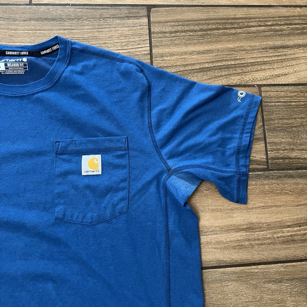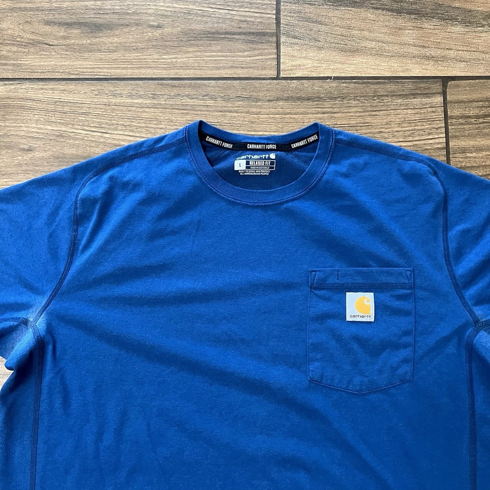 The Carhartt Force Pocket T-Shirt in Blue is a relaxed fit men's shirt in size L. Made by the renowned brand Carhartt, this tee features a comfortable regular fit with added convenience of pockets. The classic blue color makes it versatile for various outfits, while the design caters to men looking for a relaxed and functional wardrobe staple. Perfect for everyday wear or as a layer under a jacket, this T-shirt is a practical and stylish addition to any man's closet.