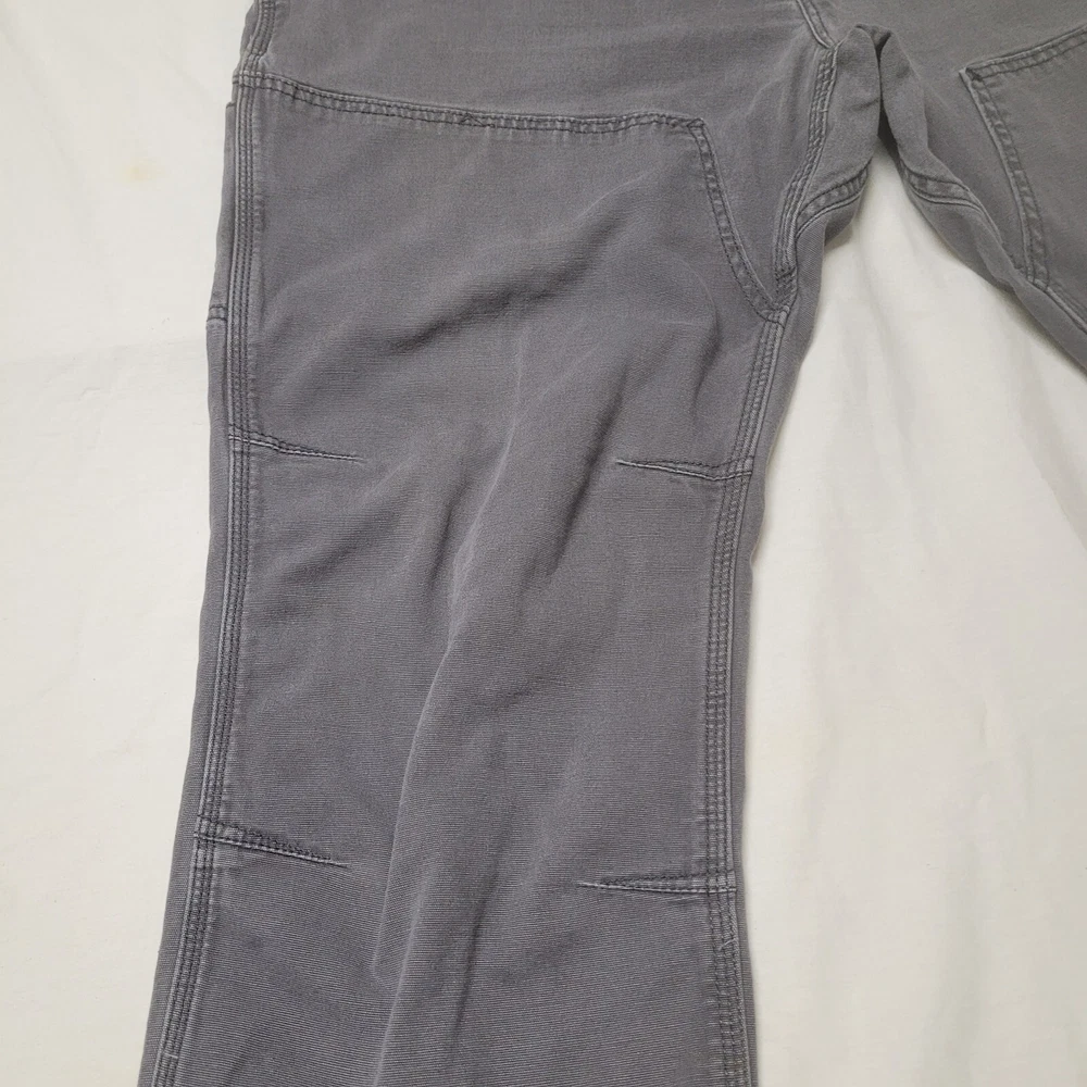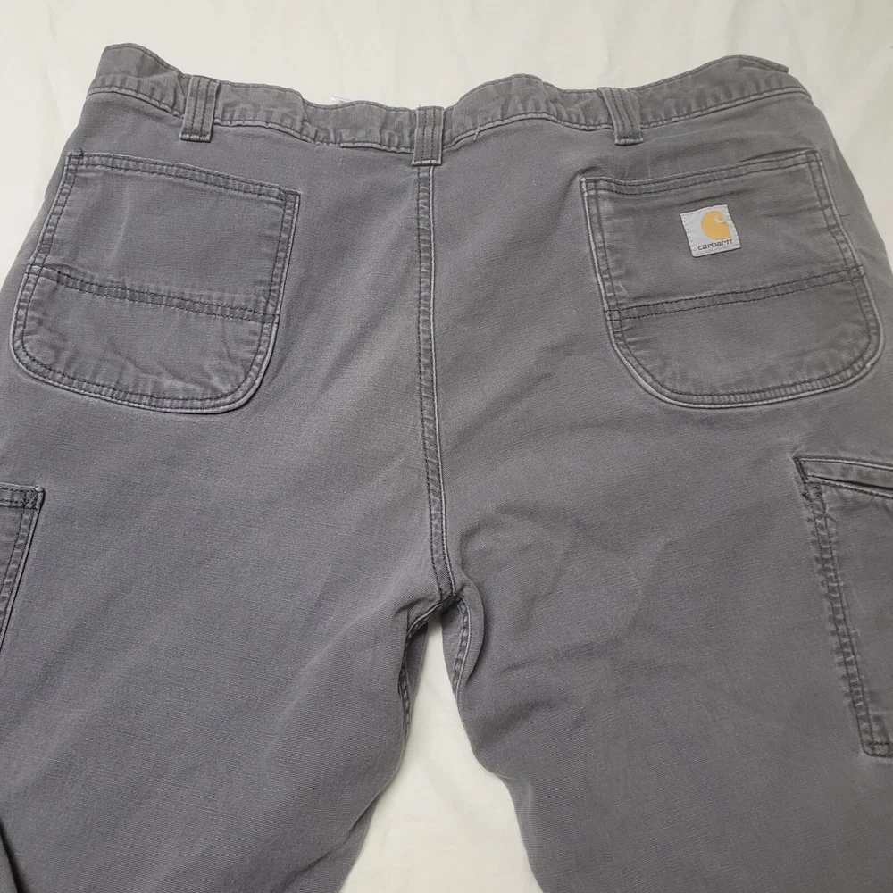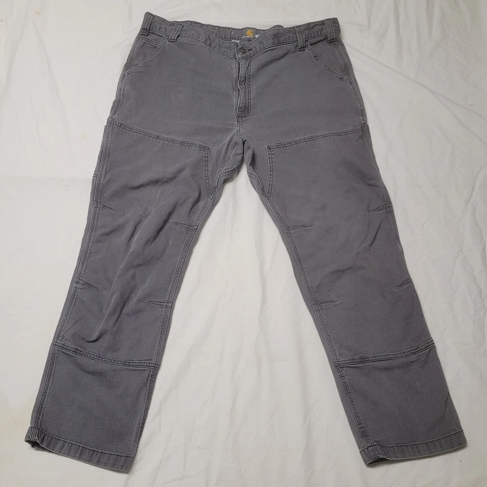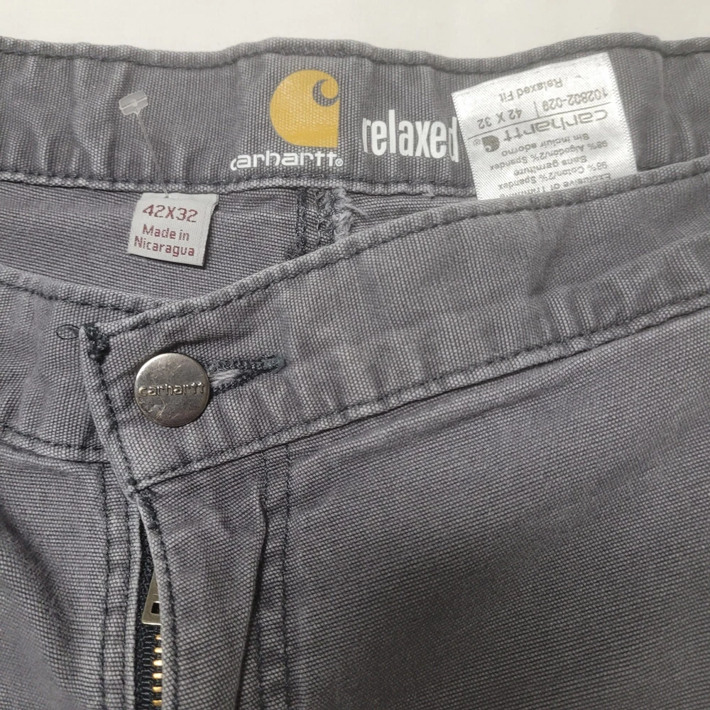 These Carhartt Gravel Gray pants are a versatile addition to any wardrobe. They feature a double knee design and a relaxed fit, making them comfortable and durable for work or casual wear. The pants are made of cotton canvas and have a flat front with a mid-rise waist. The pants come with multiple pockets, including cargo pockets and a 5-pocket design, providing ample storage space. They are available in size 42x32 and can be machine washed. The pants have a solid pattern and come with button and zipper accents, as well as the Carhartt logo. They are suitable for winter, summer, fall, and spring and are ideal for USA-themed, grunge, or 90s-themed outfits.
