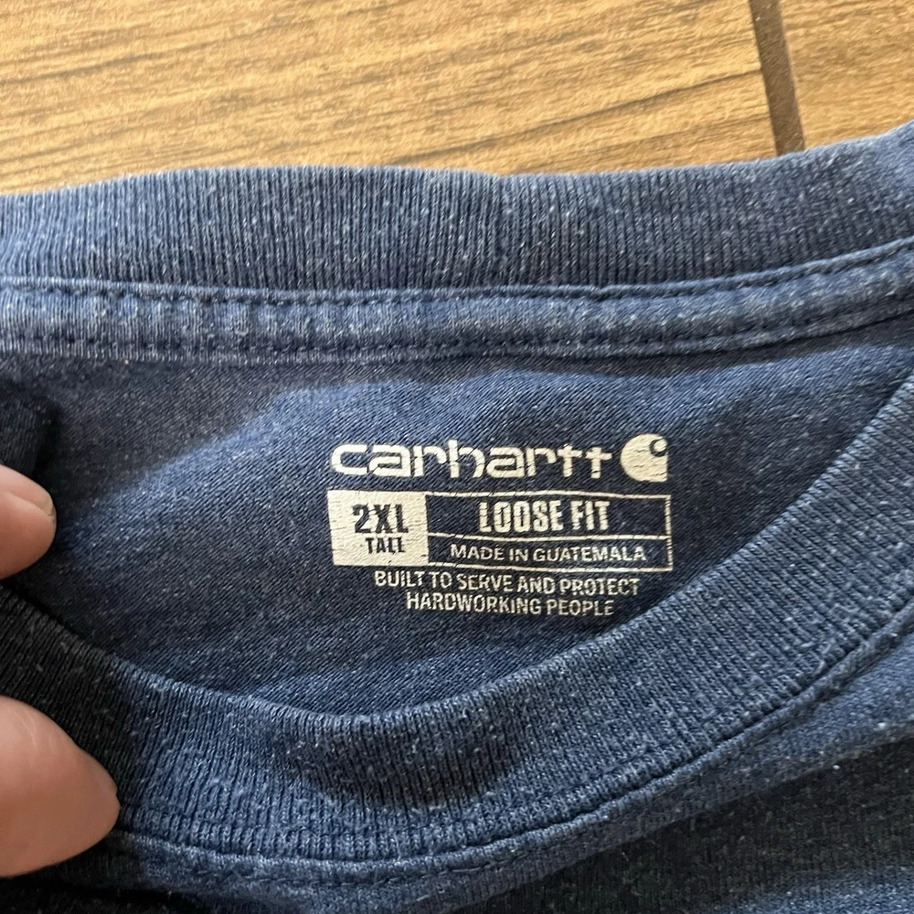 The Carhartt Men's 2XL Tall Loose Fit Navy Blue Pocket T-Shirt is a heavy-duty workwear designed for men who need a comfortable and durable top. Made by the trusted brand Carhartt, this T-shirt comes in a versatile navy blue color and features a heavyweight construction for added strength. The loose fit ensures a comfortable feel, while the pocket adds functionality for storing small items on the go. Perfect for the rugged outdoors or everyday wear, this T-shirt is a reliable choice for those who demand quality in their clothing.