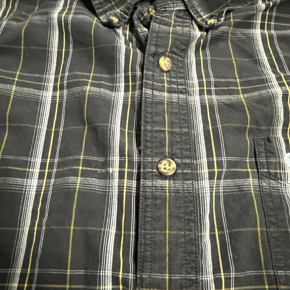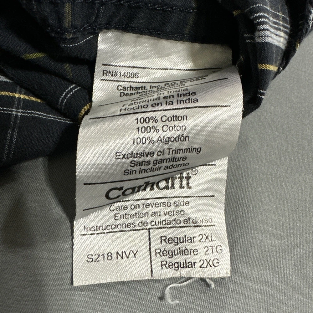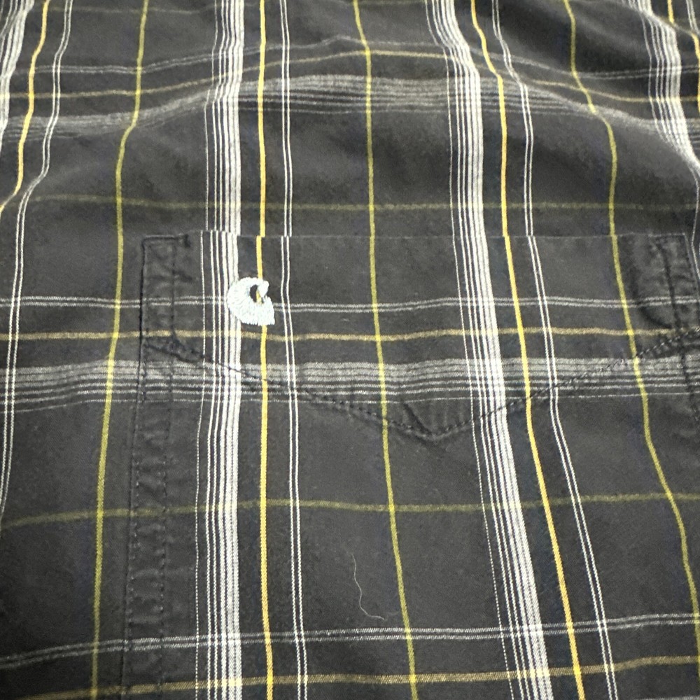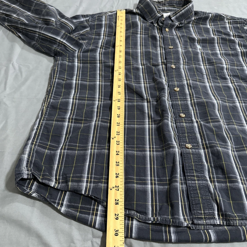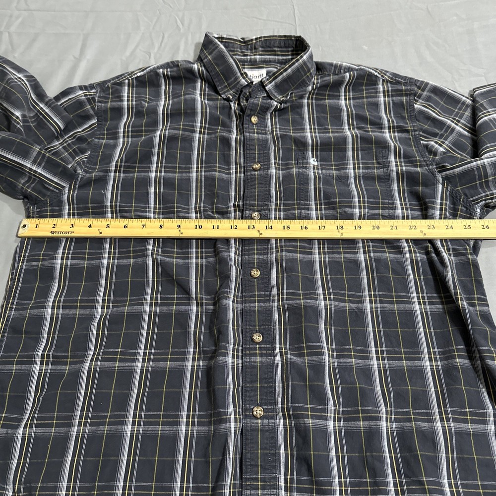 Shirt in great preowned condition See pics for accurate measurements and condition I ship every day Item # 1653 This Carhartt button-down shirt in blue plaid is a must-have for any stylish man's wardrobe. Made from high-quality cotton material, this shirt is designed to keep you comfortable all day long. It features a button-down collar and long sleeves, making it perfect for both casual and formal occasions. The shirt is available in size 2XL, which makes it suitable for men of all sizes. With its stylish pattern and excellent craftsmanship, this Carhartt shirt is a great addition to any collection. Buy it now and elevate your style game to the next level!