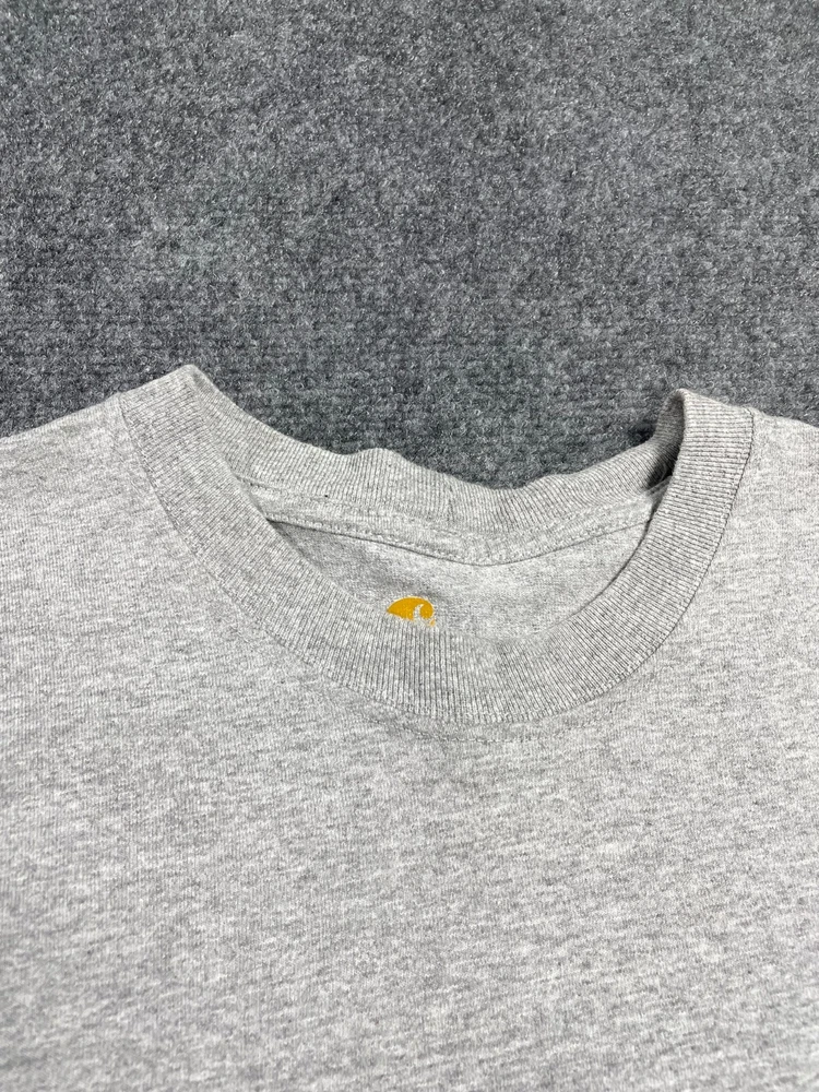 This Carhartt Men's Original Fit Heavyweight Short-Sleeve T-Shirt is a must-have for any outdoor enthusiast. Made from high-quality cotton and cotton blend material, this shirt is perfect for summer, fall, and spring seasons. The shirt features a solid pattern with a gray color and Carhartt logo accents. The shirt has a crew neck and short sleeves, making it a comfortable and versatile addition to your wardrobe. It is easy to care for and can be machine washed. The shirt is available in size M and has a regular fit. This shirt is perfect for those who love classic 80s and 90s style. Get yours today and enjoy the comfort and style that Carhartt offers.