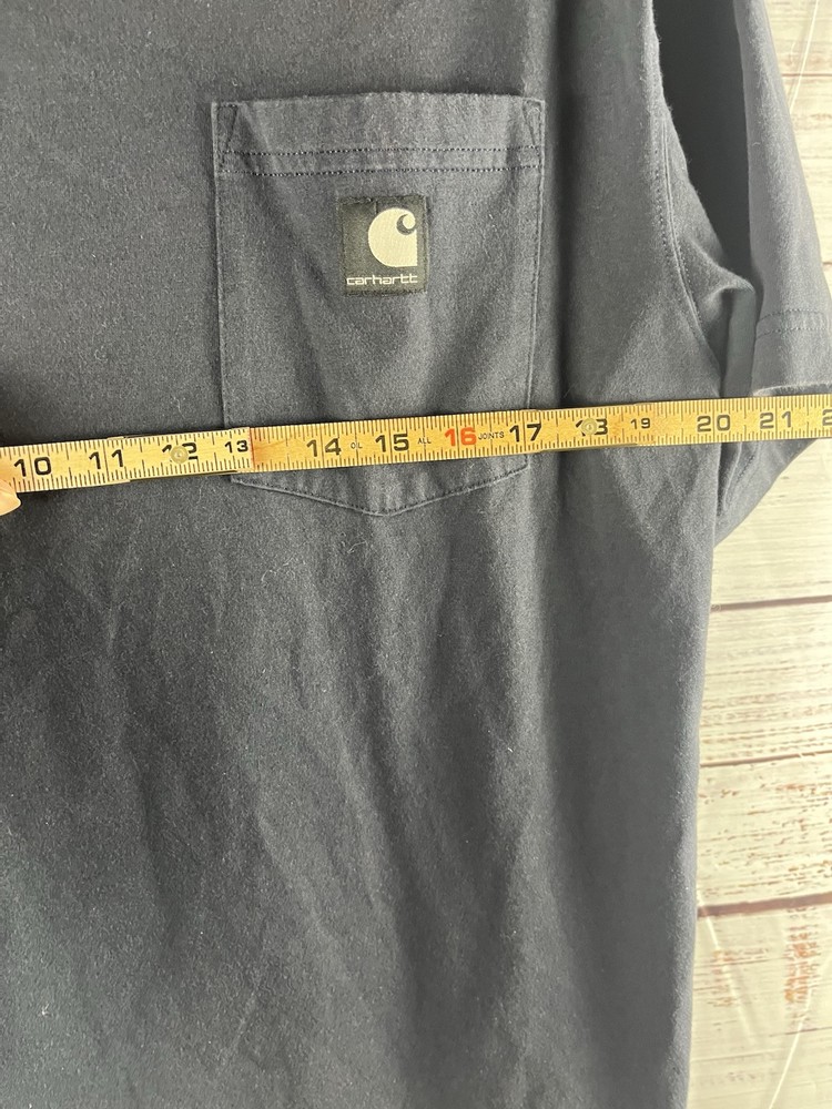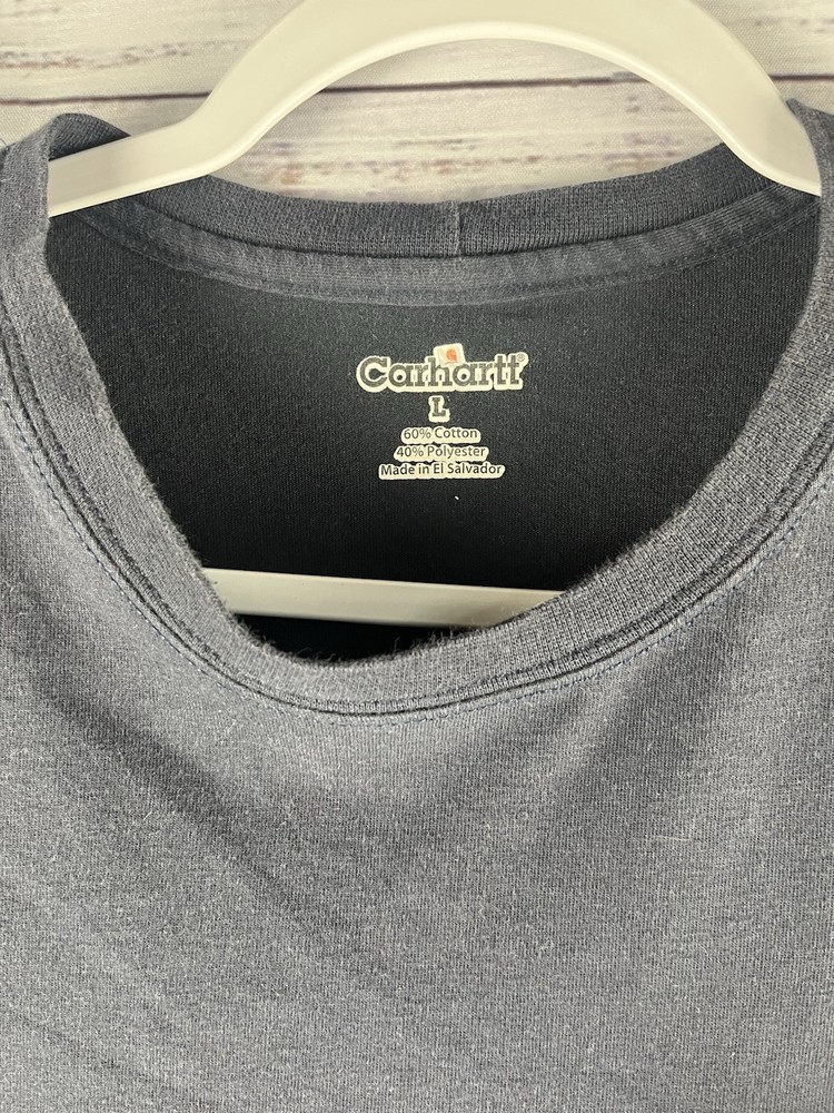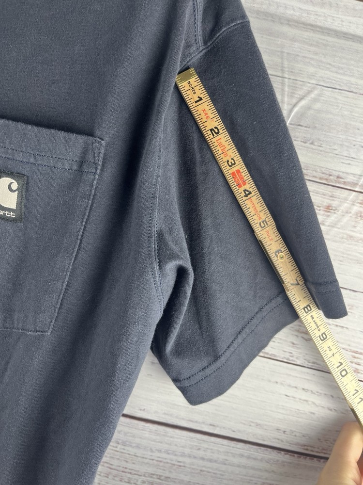 Enhance your wardrobe with the Carhartt Men's Large Blue Pocket Short Sleeve Crew Neck T-Shirt. This classic piece is crafted from a comfortable cotton blend and features a solid blue color that's perfect for any casual occasion. The shirt's short sleeves and crew neckline make it ideal for all seasons, while the heavyweight fabric ensures durability and longevity. In addition to its stylish design, this T-shirt also comes equipped with practical features like a pocket for storing small items and a button accent with the Carhartt logo. The garment care is hassle-free, thanks to its machine-washable nature. Whether you're out outdoors or just lounging around, this Carhartt T-shirt is a versatile addition to any outfit.
