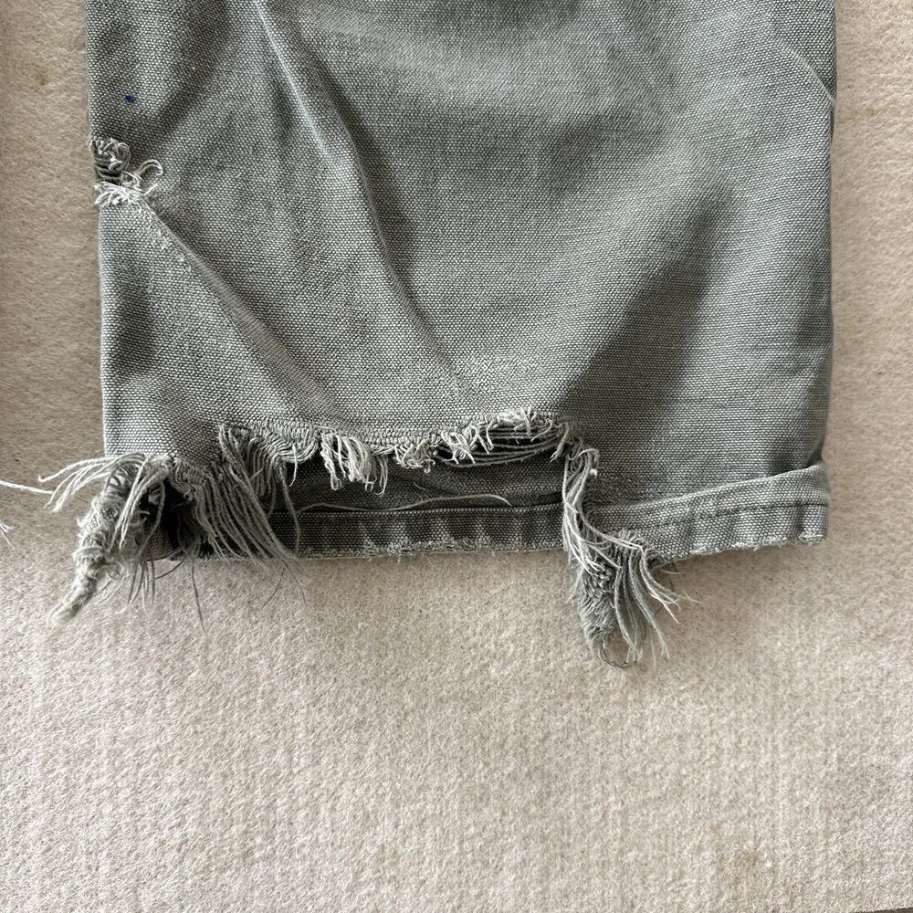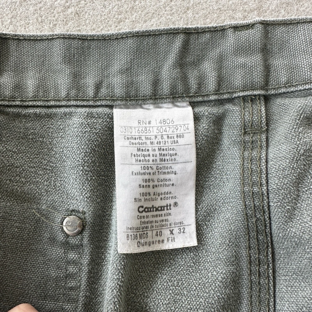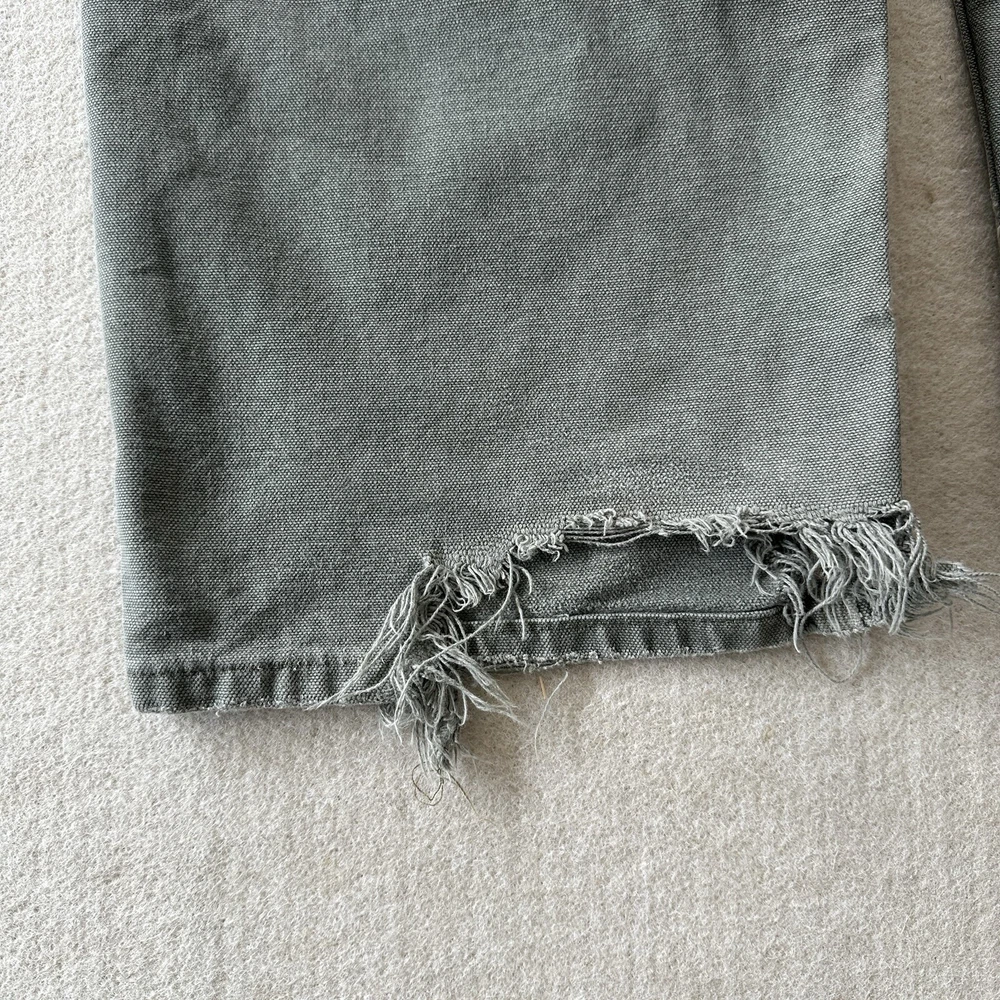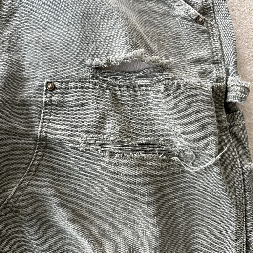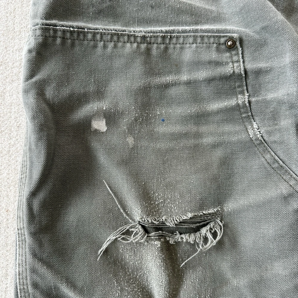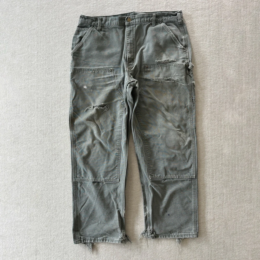 Carhartt Vintage Men's Distressed Faded Olive Green Grey Gray Double Knee Workwear Canvas Pants / Jeans Size: 40x32 B136 MDS 100% Cotton, Made in Mexico Vintage fading and distressing, please see photos for all details and measurements!