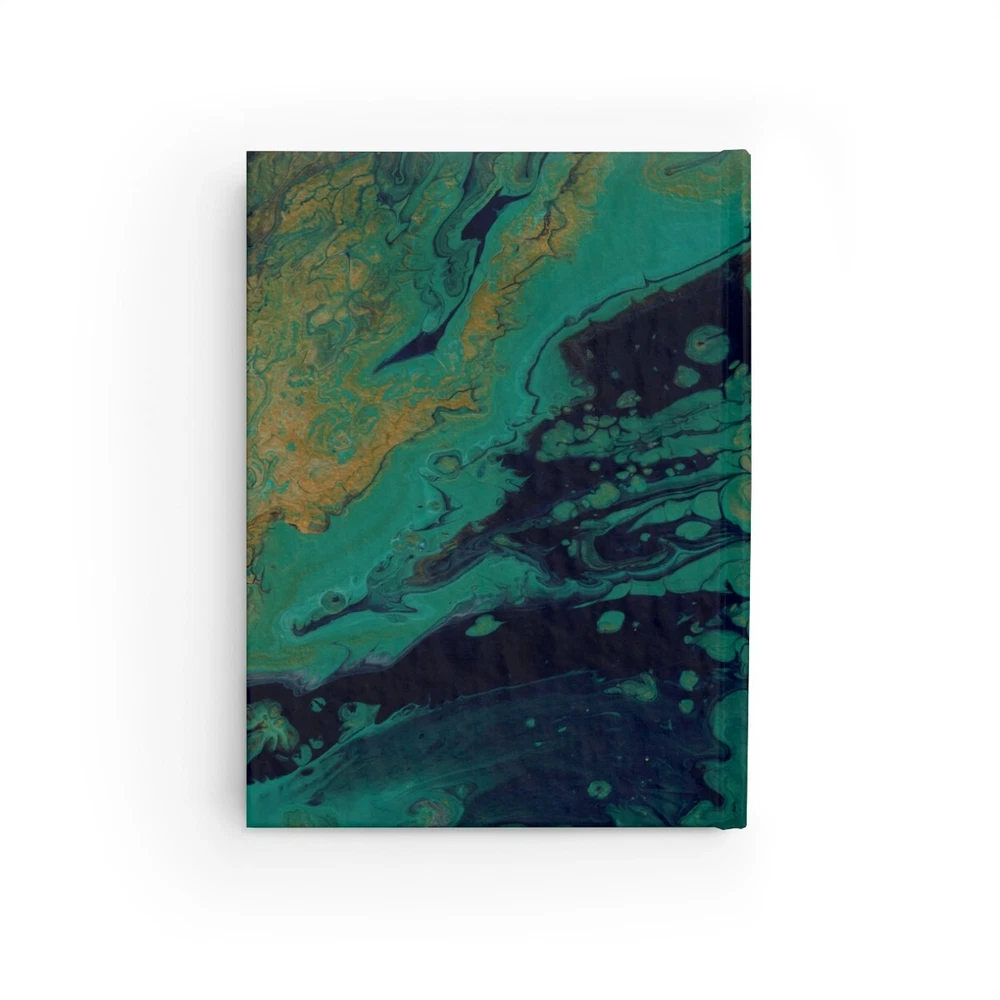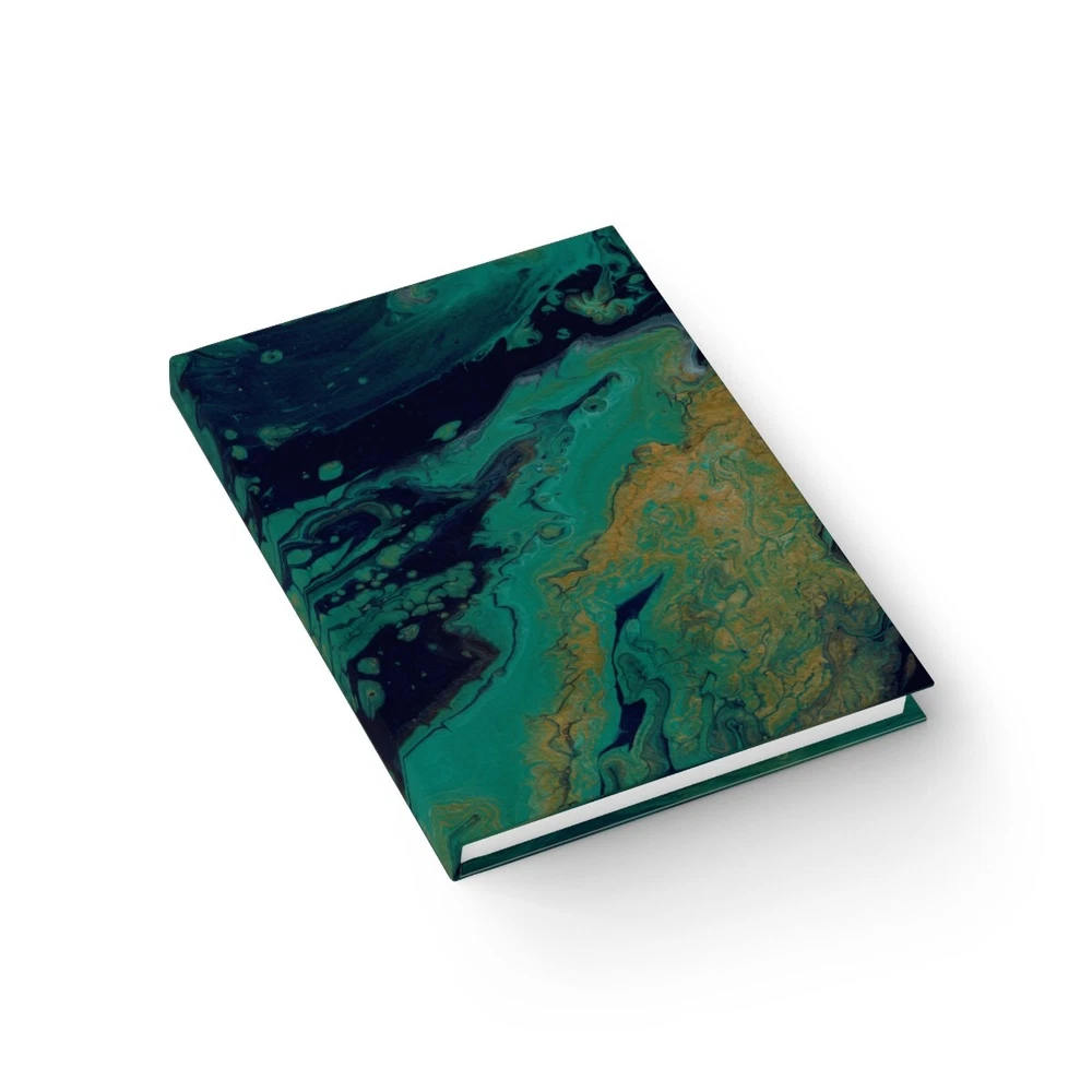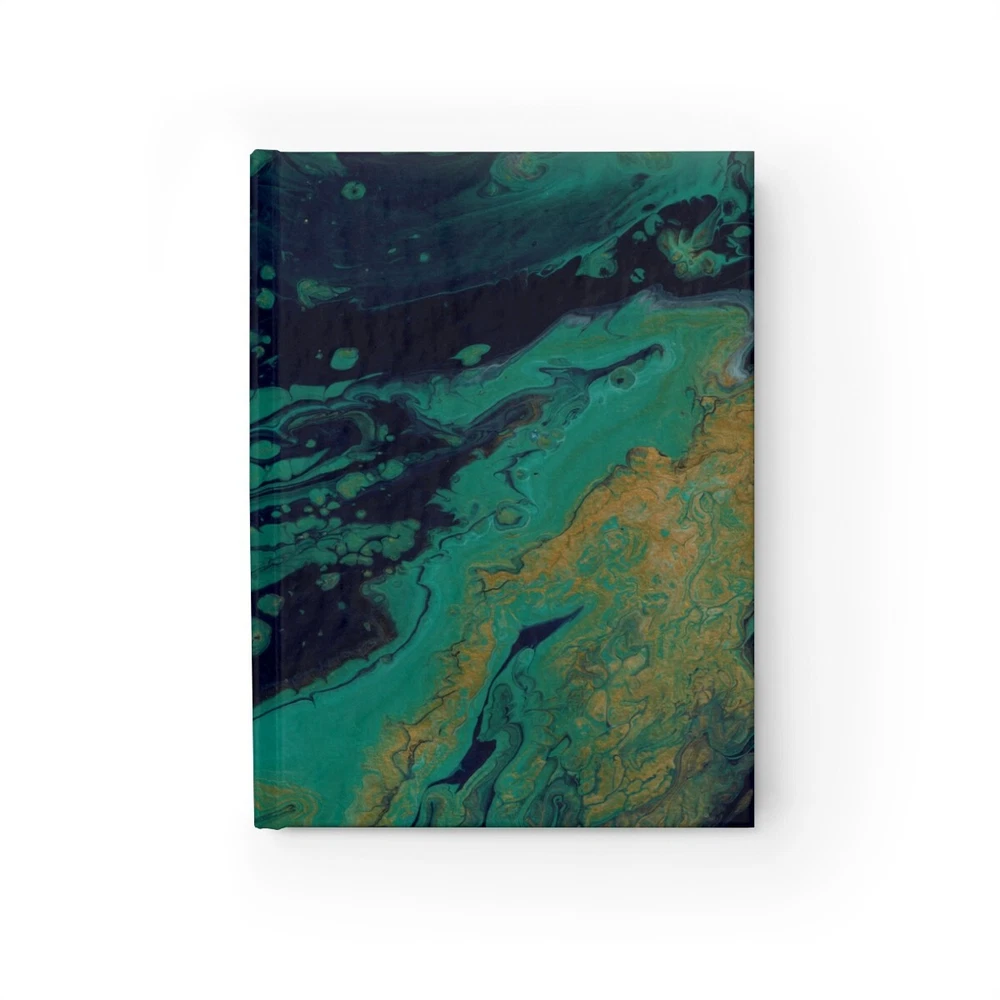 Abstract Painting by Old & Uncouth, Printed Hardcover Journal - The dark, sandy waters of the Caribbean in the warm moonlight ripples across the cover in reef encircled waves... For those who are really serious about their journal. This 128 page hardcover journal offers a wraparound durable print from front to back. An aspiring author's new best friend. .: 128 ruled line single pages .: Full wraparound print .: Casewrap binding 128 ruled line pages (64 sheets) Page paper weight: 90 gsm One size: 5" x 7" (12.7 x 17.8 cm) Full wraparound print Casewrap binding