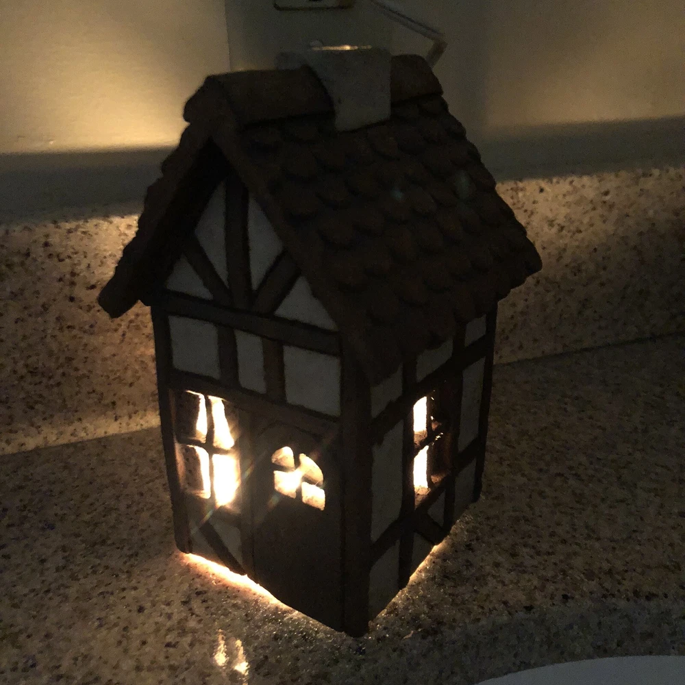 Carla Jimison Night Light Tea Lite Fairy House Stone Ware Rustic Finish Vintage