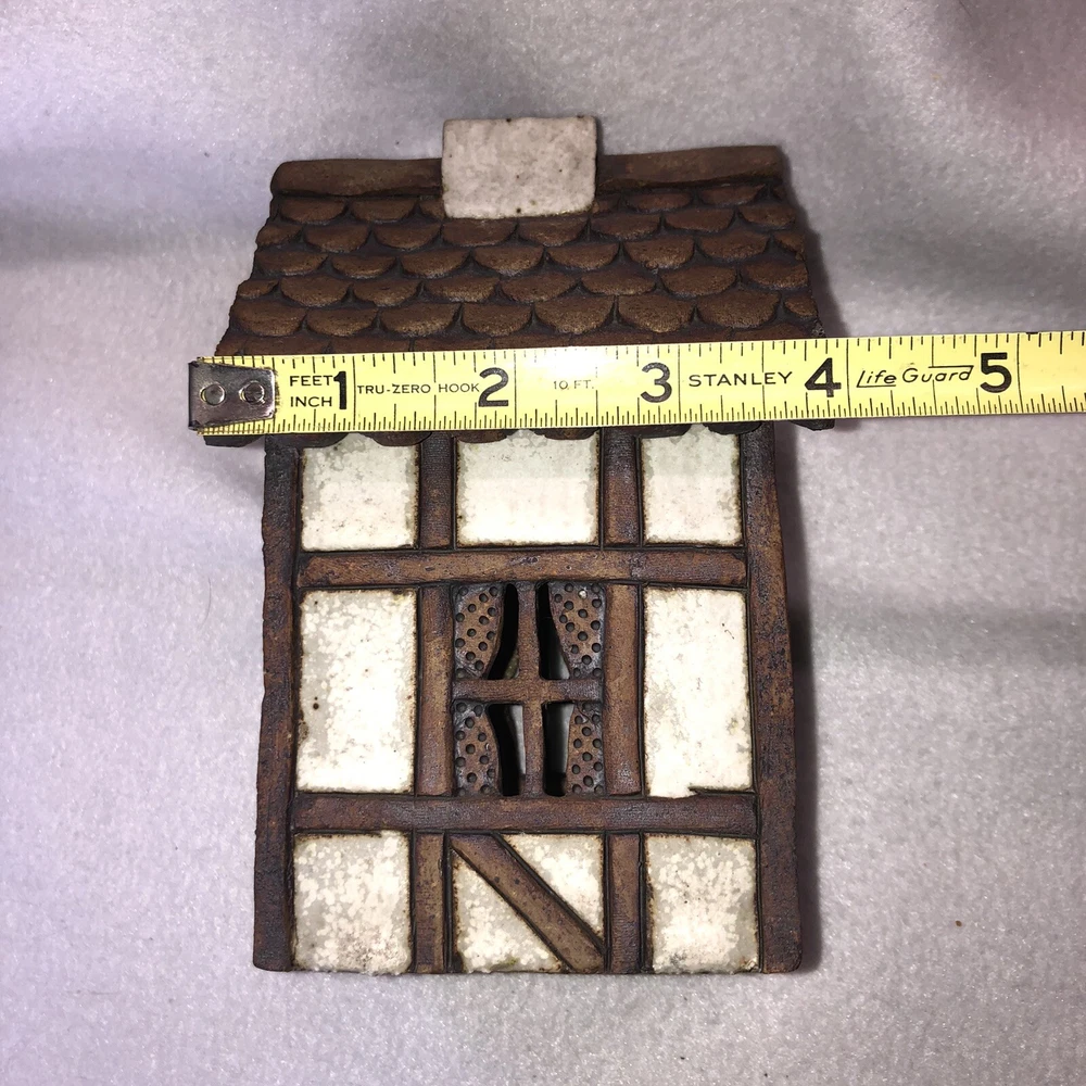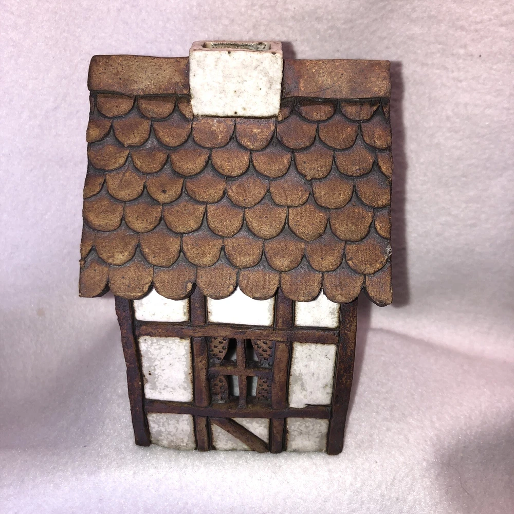 Original/Reproduction: Original Handmade: Yes Shape: House Country/Region of Manufacture: United States Size: Medium Color: Earth Tones Antique: No Occasion: All Occasions Number in Pack: 1 Item Length: 3 3/4 inches Material: Stoneware Time Period Manufactured: 1970-1979 Department: Teens, Adults Pattern: Rustic Era: Late 20th Century (1970-1999) Type: Candle Holder Style: Arts & Crafts Movement Room: Any Room Item Width: 3 7/8 inches Item Weight: 1 lb 5 ounces Suitable For: Battery Tea Lites, Electrical Cord with Light Bulb Vintage: Yes Subject: House Item Height: 6 1/4 inches Engraved: No Finish: Glazed Theme: Art Customized: No Brand: Carla Shurtliff Jimison