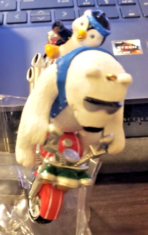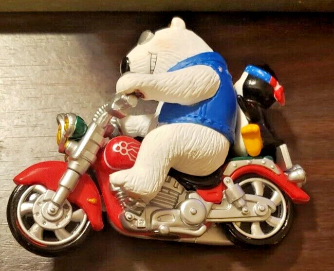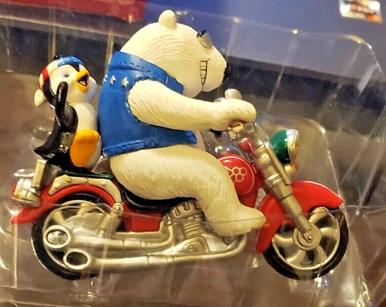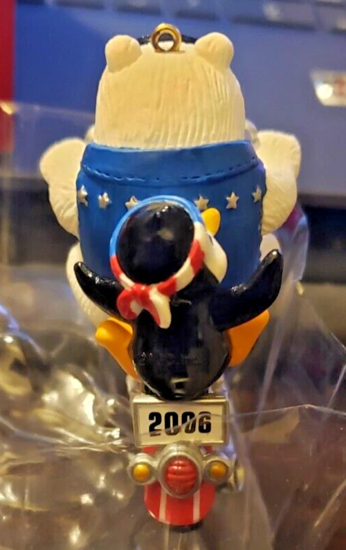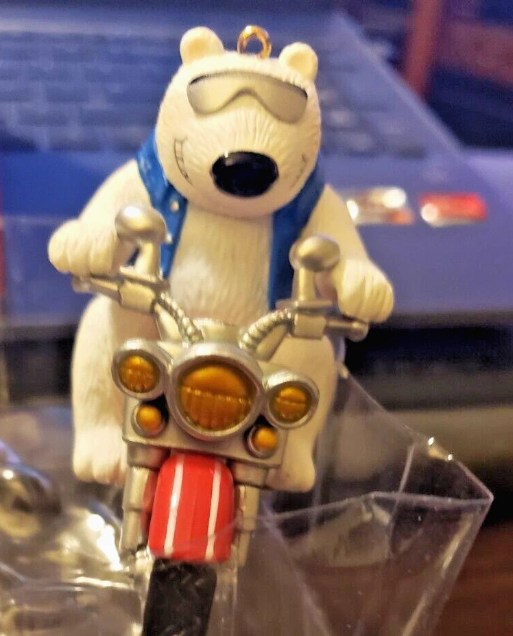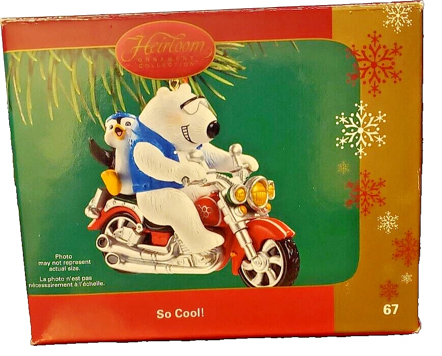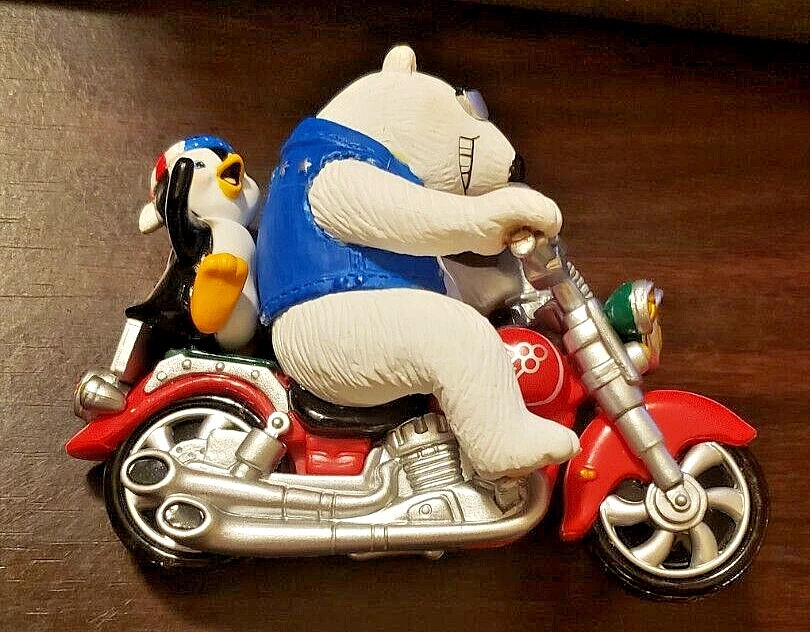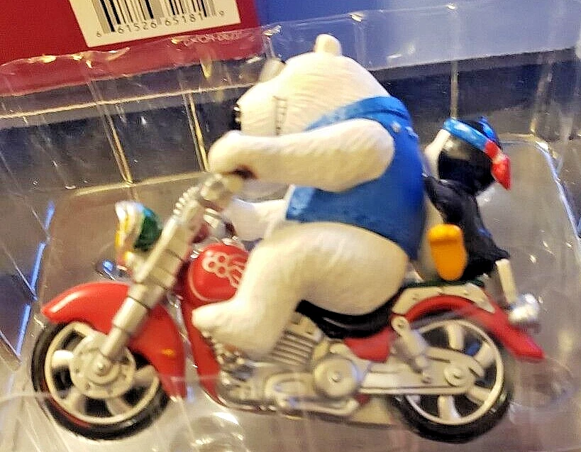 Year Manufactured: 2006 UPC: 661526651819 Brand: Carlton Cards / American Greetings Corp Set Includes: Ornament gtin13: 661526651819 Type: Ornament Occasion: Christmas Subject: Motorcycle Character: Penguin, Polar Bear Features: Hanging Collection: Ornaments Theme: Motorcycle, PolaR Bear, Penguin