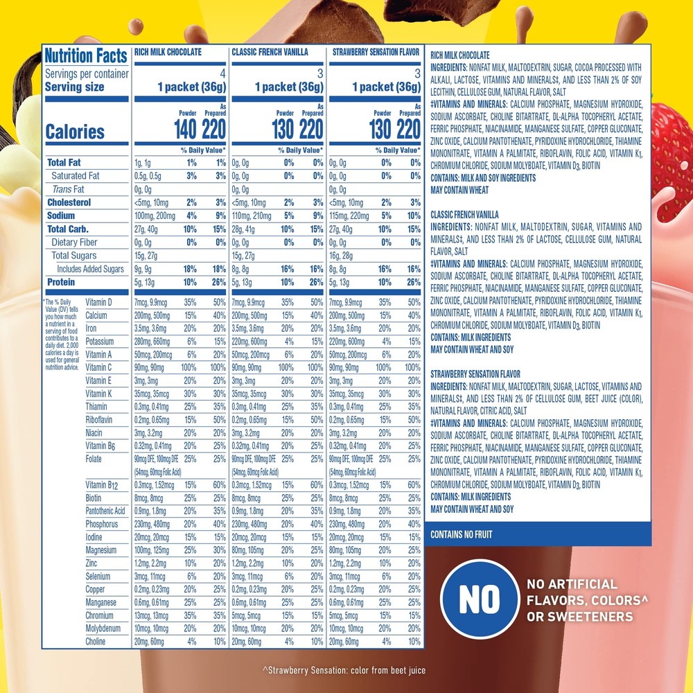 Carnation Breakfast Essentials Complete Nutritional Drink Rich Milk Chocolate / Classic French Vanilla / Strawberry Sensation Flavor 1.26 oz. 60 Ct POWDERED NUTRITIONAL DRINK: Snack or breakfast, drink with skim milk or add to smoothies, Carnation Breakfast Essentials Powdered Drink Mix provides 13g of protein when mixed with 1 cup of fat-free milk. CARNATION BREAKFAST ESSENTIALS ORIGINAL: The nutritional drink you love at breakfast, available in two easy forms: a powdered drink mix, or a shake in a bottle, in vanilla, chocolate, or strawberry. POWDER DRINK MIX: Mix Carnation Breakfast Essentials Powder Drink Mix with skim milk or mix in a smoothie for a tasty, easy snack or breakfast drink & start the day right, with protein & other nutrients. GOOD NUTRITION FROM THE START: Carnation Breakfast Essentials helps families get the vitamins & minerals they need to start the day, from powdered drink mixes to high protein ready-to-drink shakes. NUTRITIONAL DRINKS FOR BUSY LIVES: It's hard to balance a healthy lifestyle & a busy day. Carnation Breakfast Essentials nutritional drinks make it easy to start your day with good nutrition Shipping We offer FREE shipping on all orders! We ship within Three business days of payment, usually sooner. We use a selection of shipping services such as UPS, FedEx, USPS etc. We only ship to the lower 48 states, no APO/FPO addresses or PO Boxes allowed. Local pickups and combined shipping options are not provided at this time. Return You can return a product for up to 30 days from the date you purchased it. Any product you return must be in the same condition you received it and in the original packaging. Please keep the receipt. Payment We accept payment by any of the following methods: PayPal Please pay as soon as possible after winning an auction, as that will allow us to post your item to you sooner! Feedback Customer satisfaction is very important to us. If you have any problem with your order, please contact us and we will do our best to make you satisfied. Contact Us If you have any queries, please contact us via ebay. We usually respond within 24 hours on weekdays. Please visit our eBay store to check out other items for sale! Thank you for shopping at our store.