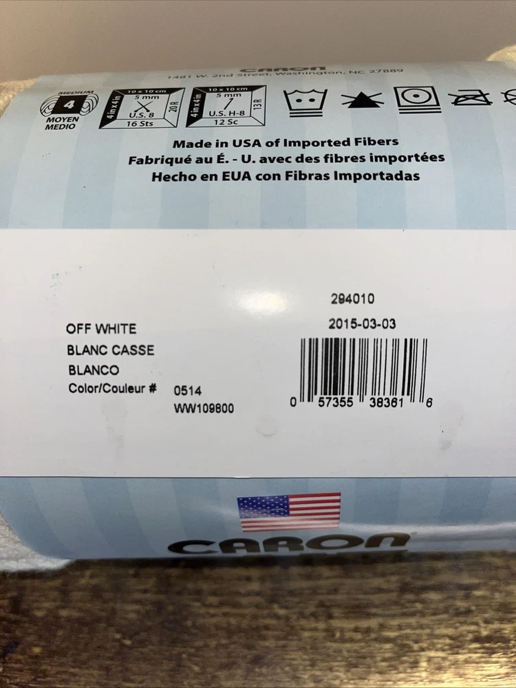 Caron One Pound Off White Yarn 16 oz 812 yds 100% Acrylic Med 4 NEW. Condition is New. Shipped with USPS Ground Advantage.