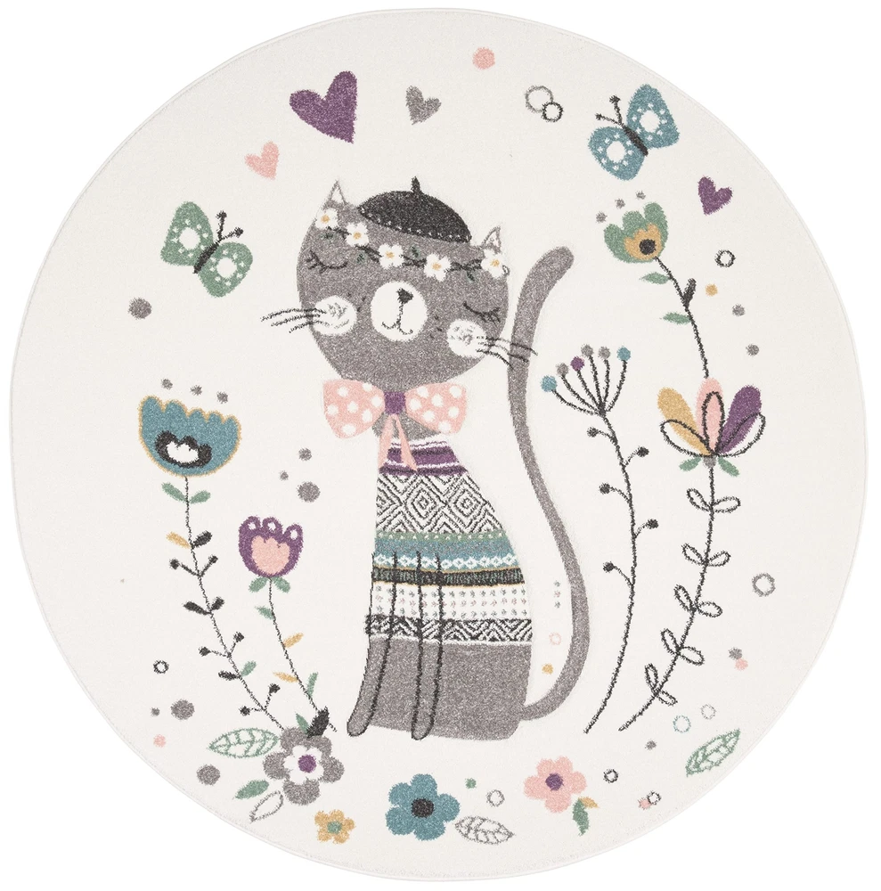 Carousel Collection 4' Round Ivory/Pink CRK187A Parisian Floral Cat Non-Shedd...