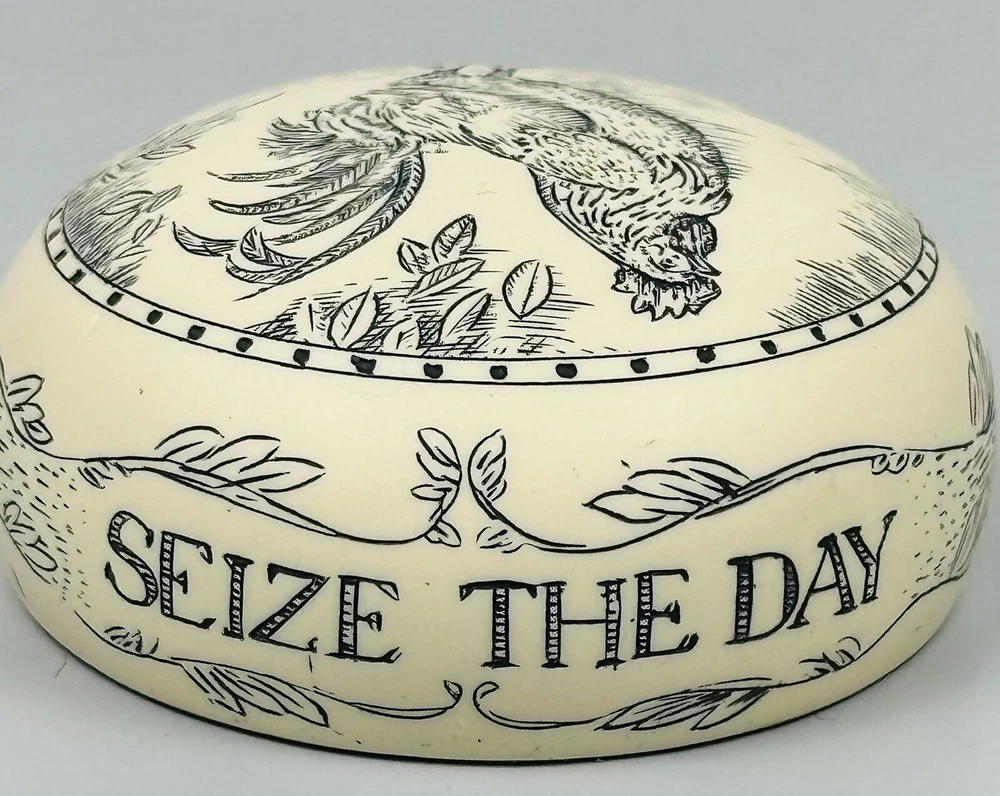Rooster Paperweight Carpe Diem Seize The Day Decorative Carved Great Britain Good pre-owned condition with a few marks on the side. See photos for condition. I ship next business day, but sometimes same business day and Saturday if order is paid for early enough. Please let me know if you have any questions. I am open to offers!! Feel free to look at other items in my store! Thanks!