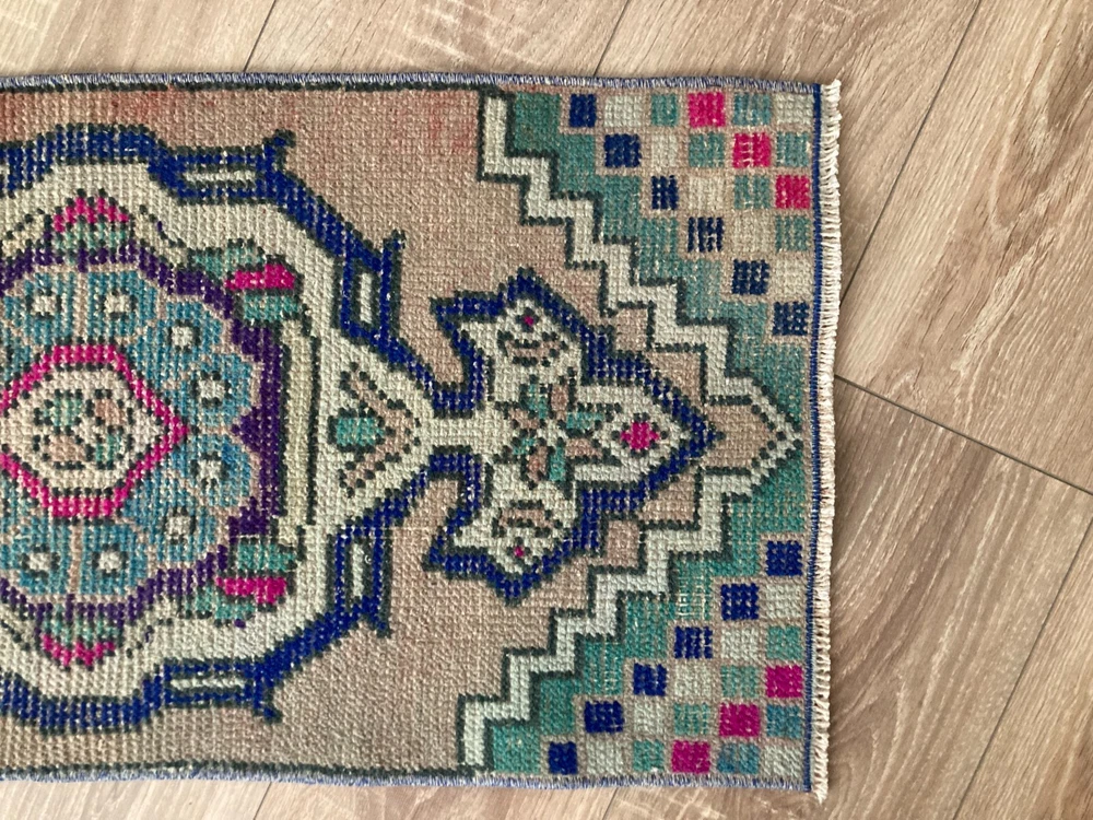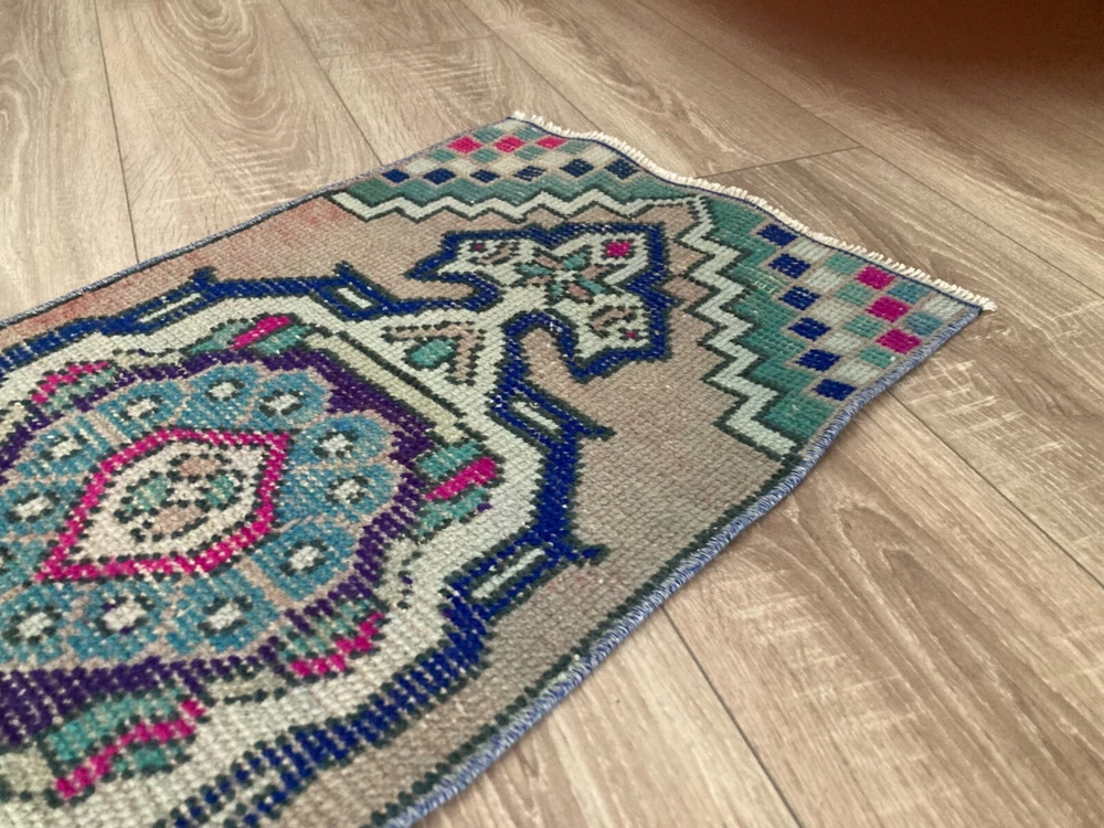 Doormat Rug, Boho Deco, Handmade Rug, Home Decor, Carpet, Wool Rug 1,3 x 2,8 ft An old (approximately 45-60 years old) hand knotted / hand woven Turkish rug from the Middle Anatolian Region and made of genuine, high quality wool, in natural colors. Our distinguished Antiques and Vintage rugs, each with its own unique story, have been carefully selected from every corner of Turkey. RUG DETAILS * One-of-a-kind vintage rug * Dimensions: 1,3 x 2,8 ft = 16 x 34 inc = 42 x 88 cm * Low pile: approximately 0.2"(0.5 cm) * Dyed with natural dyes * Product code : YDD 353 SHIPPING * Free shipping on all items. * Usually shipped via FedEx or UPS. * Item will be ready for shipment within * Estimated delivery 3-5 business days 1-3 business days with a tracking number. All of our rugs have been professionally cleaned and ready to ship before being listed. These unique vintage rugs have normal wear related to their age. We believe this adds to the authenticity of these hand-woven beauties. We inspect all rugs carefully before Shipping, but in the unlikely event that due to our fault, the goods are not fit for purpose, damaged/defective, or we ship the wrong item, we will issue a 100% refund. We are a team of experienced professionals who are dedicated to ensuring your items arrive safely. Please note that our photos accurately represent the colors of the rug, however it may look different in the light in your home or against different colored floors. We are so excited to share the beauty and art of rugs with you and to see how your personal spaces transform! I do my best to build a great experience in online rug shopping for you, just look at the reviews. Please feel free to write me over conversation if you have any questions about the rug or price. I will be happy to answer to you. Thank you, Tasselsrug.