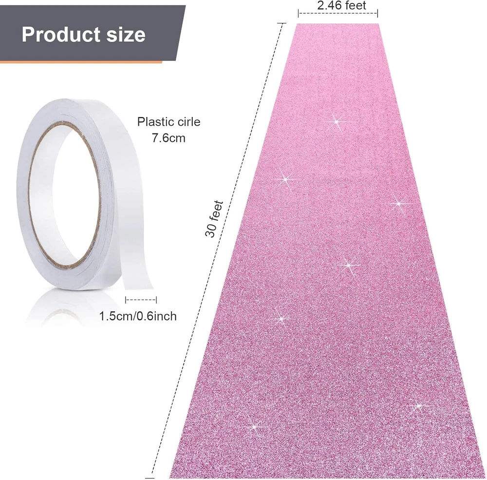 Carpet Runner Runway Rug 55 GSM Thickness with Carpet Tape for Glitter Pink New Color:Glitter Pink Size: 2.46 x 30 Feet Material: Polyester Weave Type: Flat Woven Pile Height: Low Pile You will receive: you will get 1 glitter carpet pad and 1 piece of carpet tape in the package for your trade show and party for the event, and if you think this lightweight non-woven fabric is not wide enough, you can use two sheets for piecing; Please make sure the size before you buy Appropriate size: the hallway rug is 2.46 x 30 feet with 55 gsm, the enough thickness bringing comfortable feeling when you walk on it; And the white carpet tape is 0.05 x 33 feet, enough length to meet your need Convenient arrangement: the runway rug will slide easily on the floor, so we equipped with a roll of just double sided carpet tape to well secure the carpet on the floor, the good combination can avoid most accident Practical and leave no residue: the carpet tape with fiberglass reinforced that has quality durability, is good for fixing the wedding carpet; The tape with hot adhesive can securely bond to smooth and rough surfaces Wide application: the glitter rug with carpet tape can work well in the most activities, such as wedding, party, fair, ceremony and so on; Of course you can just use it to decorate the Christmas, the classic color can well fit the Christmas atmosphere Return Policy: We offer a 30 day return policy from the receiving date. Please contact us for a Free Return Label. Please use our return label so it will go back to our supplier and we can do a refund or replacement afterwards. Feedback: Your satisfaction is very important to us! If you have any problem with your order, please contact us and we will do our very best to make you satisfied. As long as you are happy with your purchase, please leave a positive feedback for us. We will always leave you a positive feedback in return. If you have any problem with your purchase, please do not leave a negative feedback. Please Contact us ... and your issue will be solved quickly and positively We are a small family-owned business trying to make a living, not a huge company that does not care ... We will ALWAYS do our best for you!
