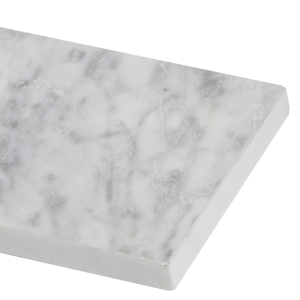Recommended Use: wall and floor tiles such as kitchen floor, kitchen island walls, kitchen backsplash, bathroom floor, bathroom backsplash, bedroom walls, laundry rooms etc. 4 in. width x 12 in. length x 3/8 in. thick Grade 1, first-quality natural marble tile for floor, wall and countertop use Polished smooth finish with a high sheen and random variation in tone It is recommended you purchase a minimum of 10% overage to account for design cuts and patterns