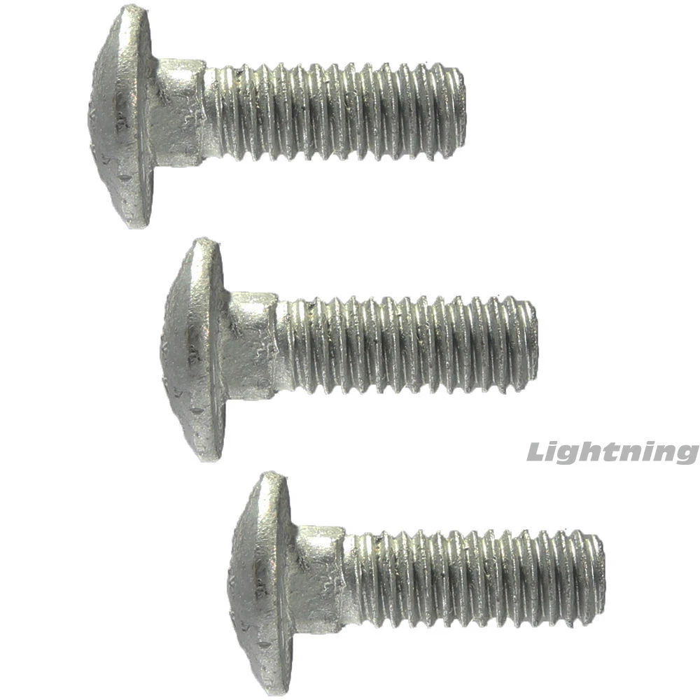Carriage Bolts Hot Dipped Galvanized Grade 2 W/ Nuts 5/8-11 x 3-1/2'' Qty 25 A carriage bolt, coach bolt or round head square neck bolt is used through iron strengthening plates on either side of a wooden beam. It is commonplace though to use them on bare timber, the squared section giving enough grip to prevent rotation. Carriage bolts are extensively used in security fixings where the bolt must only be removable from one side. The smooth domed head and square neck below prevent the carriage bolt from being unlocked from the insecure side. Thread Length If the Fastener's length is Less Than 6", The fastener is Fully Threaded If the Fastener's length is Greater Than 6", The fastener is Threaded 6" General Product Information Head Style : Round Head Head Diameter : 1.344" Length Under Head : 3-1/2'' Quantity of Fasteners in Package : 25 Material : Hot-Dipped Galvanized Grade 2 Steel�Offers superio Shipping: All orders placed before 3:30 pm EST Will Ship Same Day Tracking is provided on ALL Orders Priority Mail Shipping service is offered at a discount of only $3.95 UPS Ground UPS Next Day Air is available, Please inquire for pricing Returns : ALL returns are accepted if returned within 60 days. Money Back or exchange guaranteed. NO Restocking Fees. For YOU, we constantly strive to find ways to improve our performance.