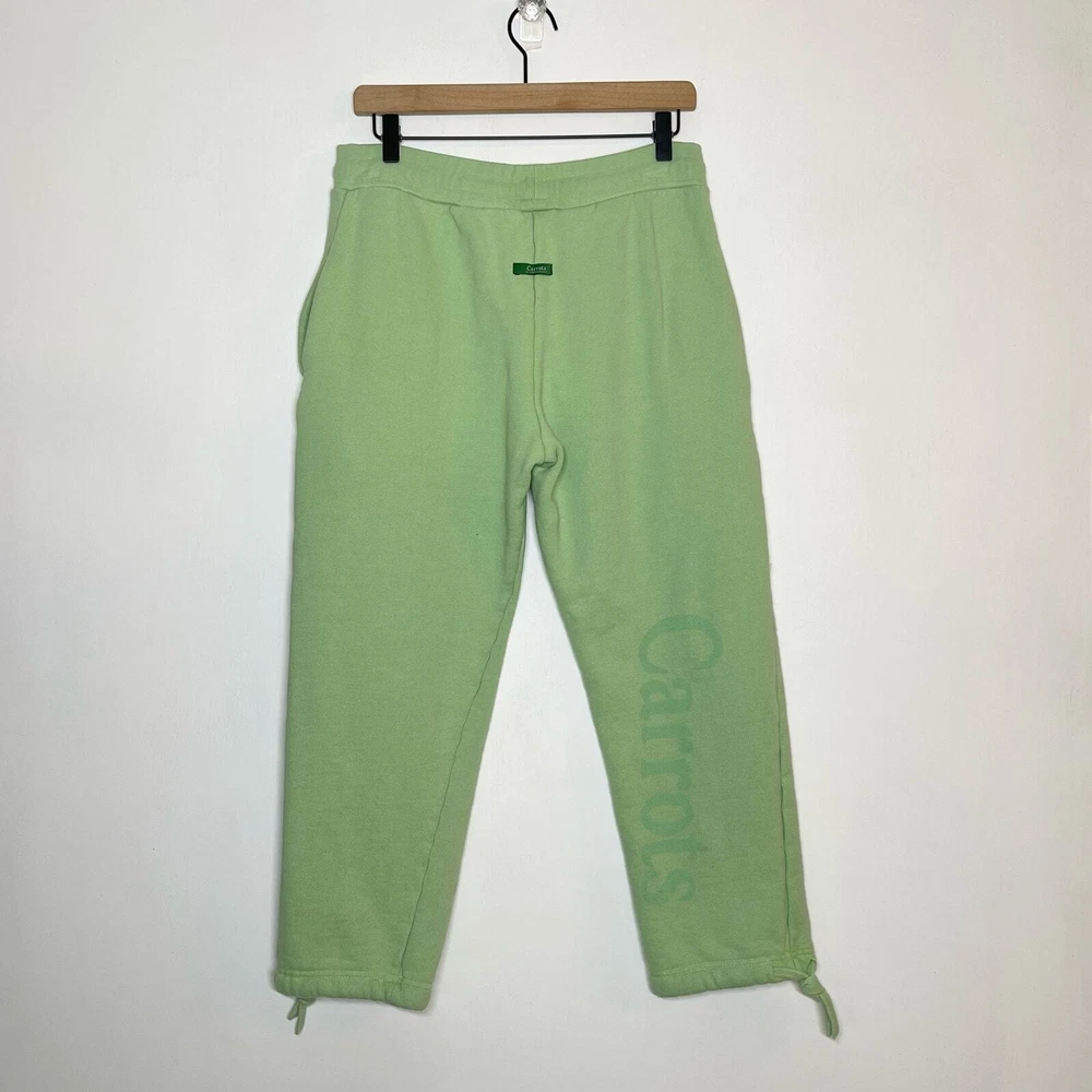 Carrots Sweatpants Men's Size Small Sage Green Drawstring Elastic Waist Brand: Carrots Size: Small Style: Sweatpants Color: Sage Green Condition: Good Preloved Condition (stain on front) Carrots logo sprouts up one leg of sweatpants made of cotton-blend fleece in a fit that's relaxed and gives you comfortable room to grow. Approximate flat lay measurements Waist 16in Rise 11.5in Inseam 24in