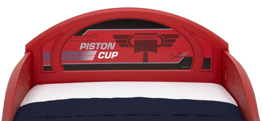 Rev up your little racer’s excitement about bedtime with this Disney Pixar Cars Lightning McQueen Race Car Plastic Sleep and Play Toddler Bed with Attached Guardrails from Delta Children. Designed in the likeness of his favorite race car, Lightning McQueen, this starter bed will bring full-throttle fun to bedtime, making it easier than ever to transition them from baby crib to toddler bed. The finely detailed toddler bed features decals and graphics that will make it a winner with Cars fans everywhere. RECOMMENDED AGE: 15 months+ DURABLE PLASTIC DESIGN: Made from durable, molded plastic with built in toddler guardrails to keep your child secure LIGHTNING MCQUEEN GRAPHICS AND DESIGN: This toddler bed features likeness of Lightning McQueen with bold decals and graphics | Makes it fun and easy for your little one to transition from crib to toddler bed SAFE DESIGN: The mattress is designed to sit low in the bed frame for your child's safety and ease | JPMA certified to meet or exceed all safety standards set by the CPSC & ASTM Mattress sold separately. See our assortment of toddler mattresses. ASSEMBLED DIMENSIONS: 29.5" W x 54.25" D x 17.25" H