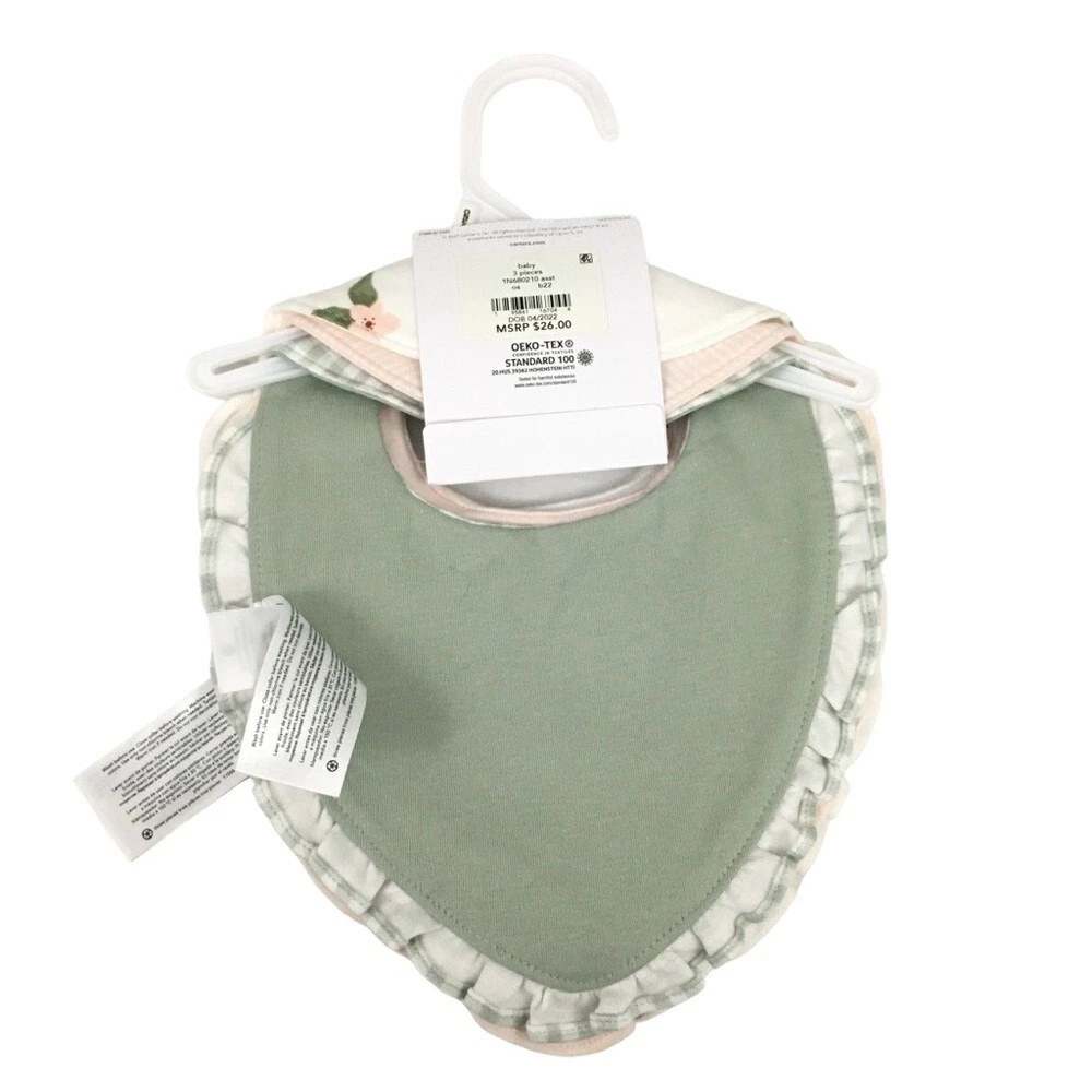 Carter's 3-Pack Girl's Bandana Bibs Pink Green Floral NWT. Smoke-Free.
