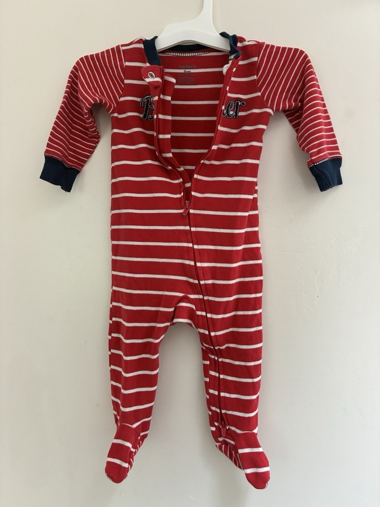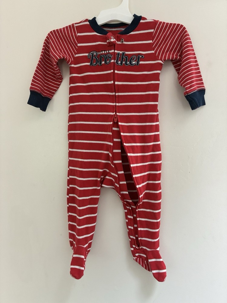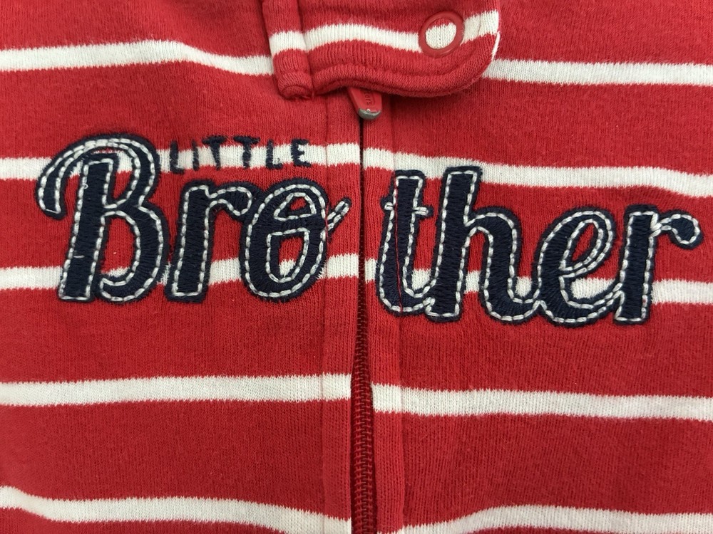 Carter's Baby Boy Little Brother Striped 2-Way Zipper Cotton Sleep & Play Red 9M. Condition is pre-owned. Smoke free, pet free home. Shipped via USPS Ground Advantage. In very good condition. Free of rips or stains.