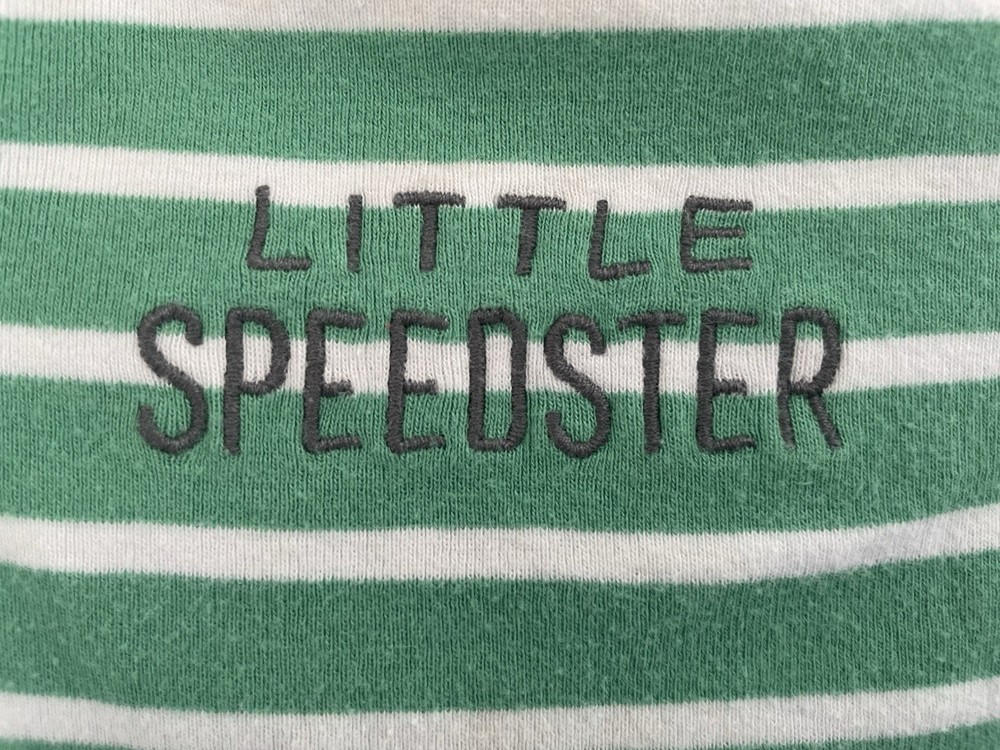 Carter's Baby Boy Little Speedster Striped Cotton Long Sleeve Bodysuit Green 12M. Condition is pre-owned. Smoke free, pet free home. Shipped via USPS Ground Advantage. In good condition. There are light stains on the front. Free of rips.
