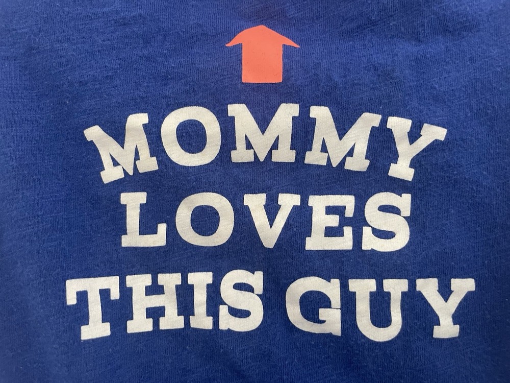 Carters Baby Boy Mommy Loves This Guy 100% Cotton Short Sleeve Bodysuit Blue 12M. Condition is pre-owned. Smoke free, pet free home. Shipped via USPS Ground Advantage. In good condition. There is a snag in the fabric at the bottom by the buttons. Free of rips or stains.