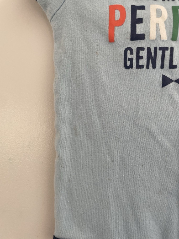 Carter's Baby Boy Mommy's Perfect Gentleman Cotton Short Sleeve Bodysuit Blue 9M. Condition is pre-owned. Smoke free, pet free home. Shipped via USPS Ground Advantage. In good condition. There are light stains on the front. Free of rips.