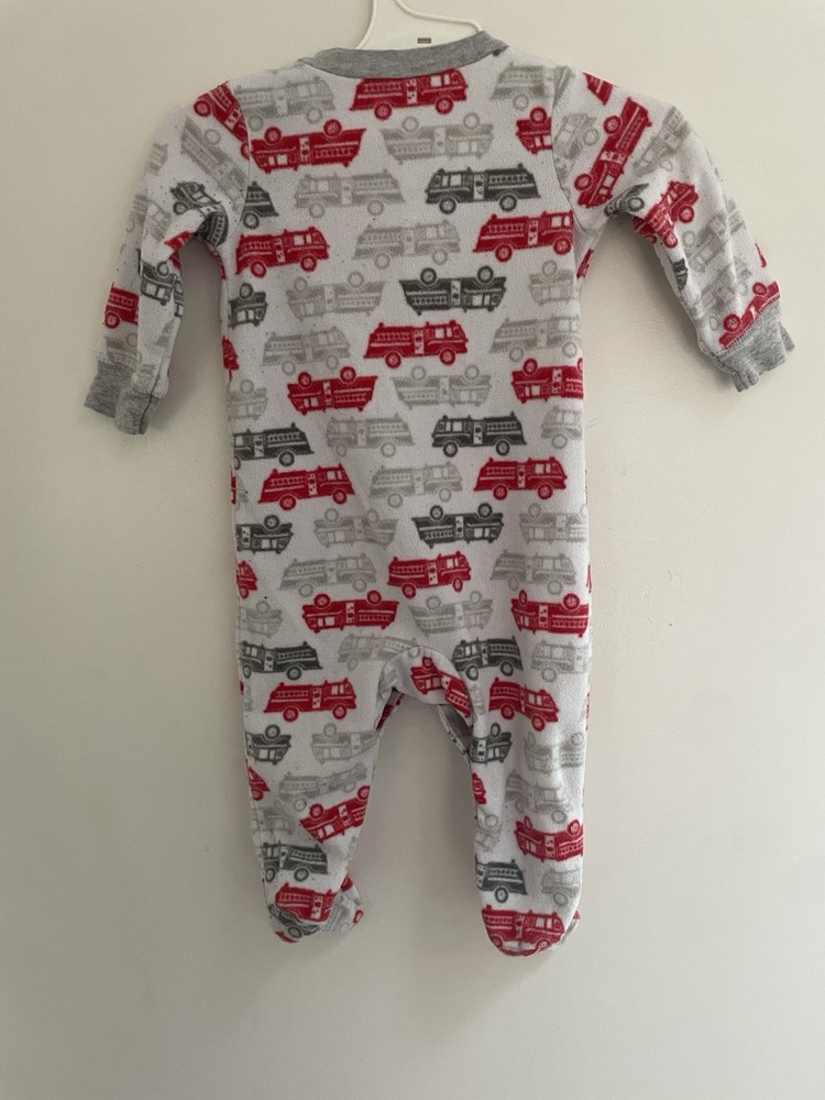 Carter's Baby Boys Allover Fire Trucks Cozy Fleece Snap-Up Sleep & Play White 6M. Condition is pre-owned. Smoke free, pet free home. Shipped via USPS Ground Advantage. In good condition. Free of rips or stains.
