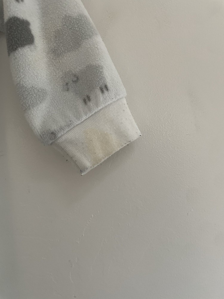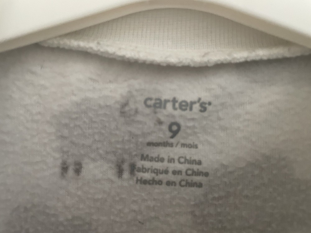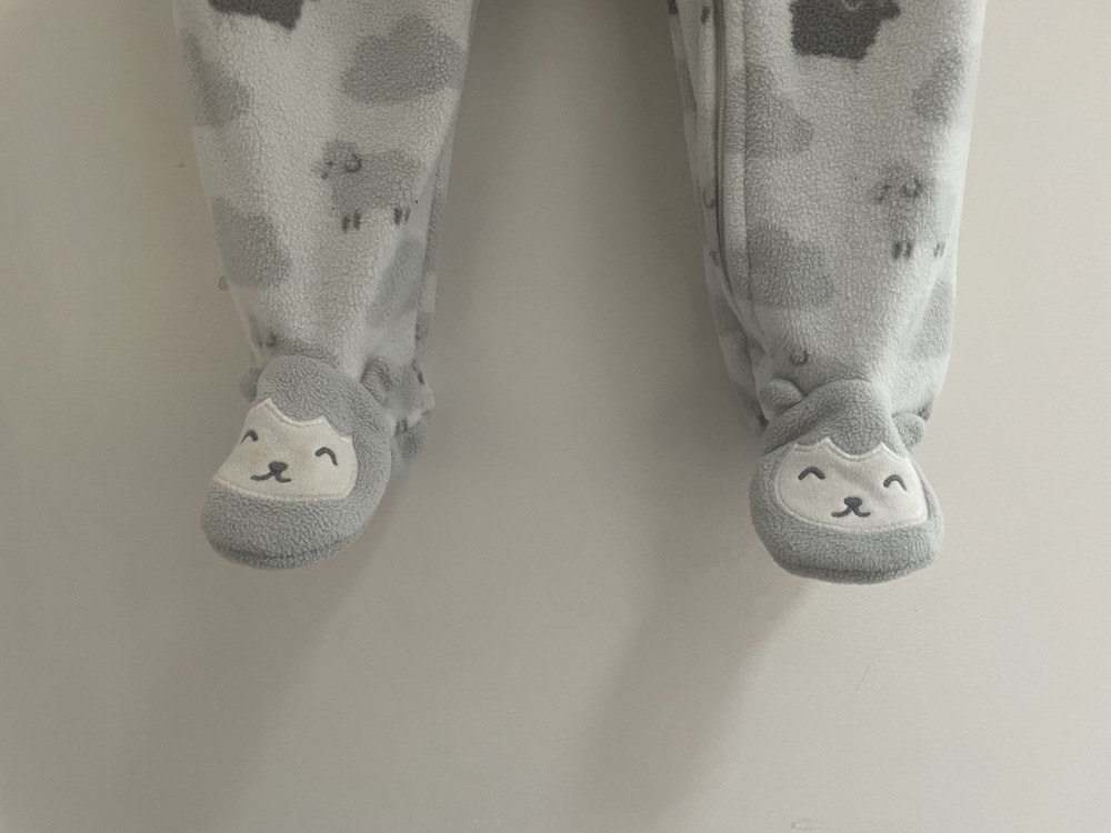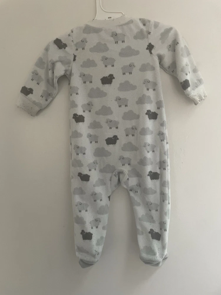 Carter's Baby Boys Cute Allover Lambs Cozy Fleece Zip-Up Sleep & Play White 9M. Condition is pre-owned. Smoke free, pet free home. Shipped via USPS Ground Advantage. In fair condition. There are stains on the front. Free of rips.