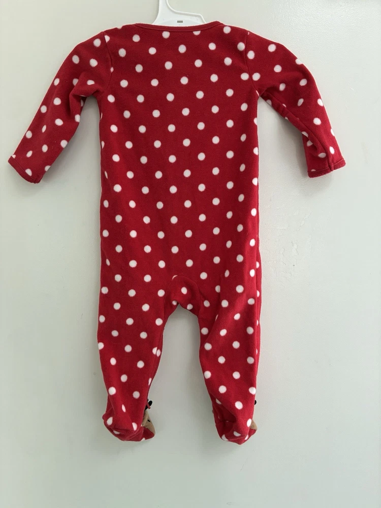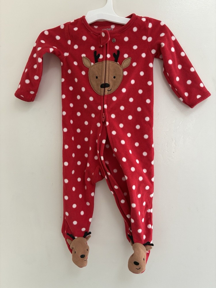 Carter's Baby Girl 1-Piece Cute Reindeer Polka Dot Christmas Sleep & Play Red 9M. Condition is pre-owned. Smoke free, pet free home. Shipped via USPS Ground Advantage. In very good condition. Free of rips or stains.