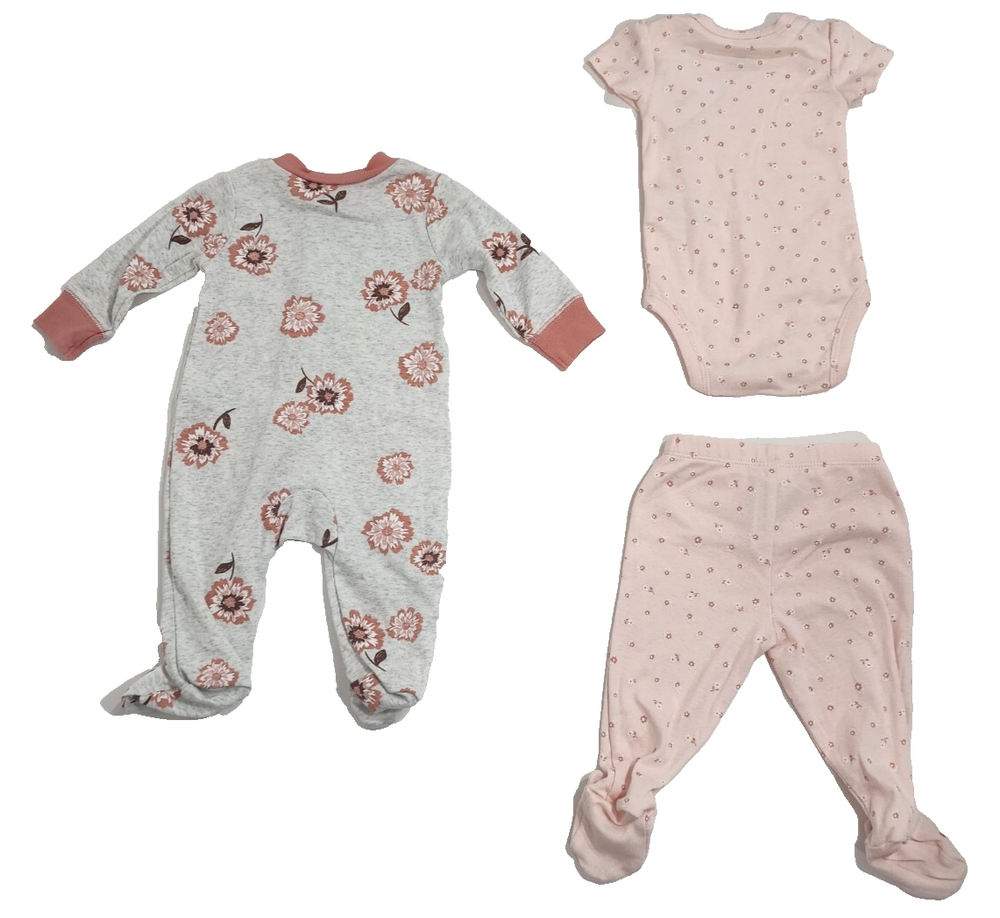 🍼 Carter’s Baby Girl 3-Piece Outfit Set – Bodysuit, Footed Pants & Sleeper 👶