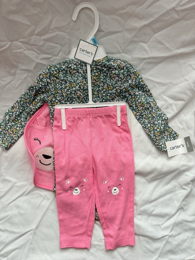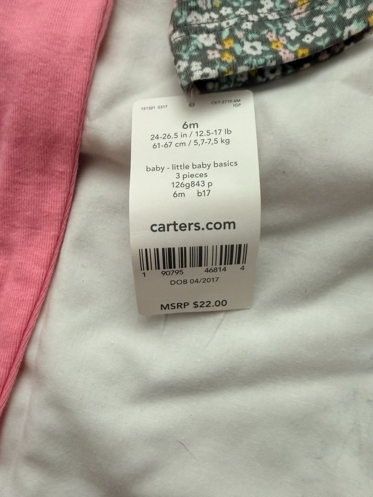 Number of Pieces:3 PieceSet Includes:PantsSize:6-9 MonthsMaterial:100% CottonGarment Care:Machine WashableVintage:NoBrand:Carter'sPattern:FloralAccents:RuffleDepartment:GirlsOccasion:CasualSeason:SpringClosure:SnapHandmade:NoPersonalize:NoColor:MulticolorType:Outfit/Set