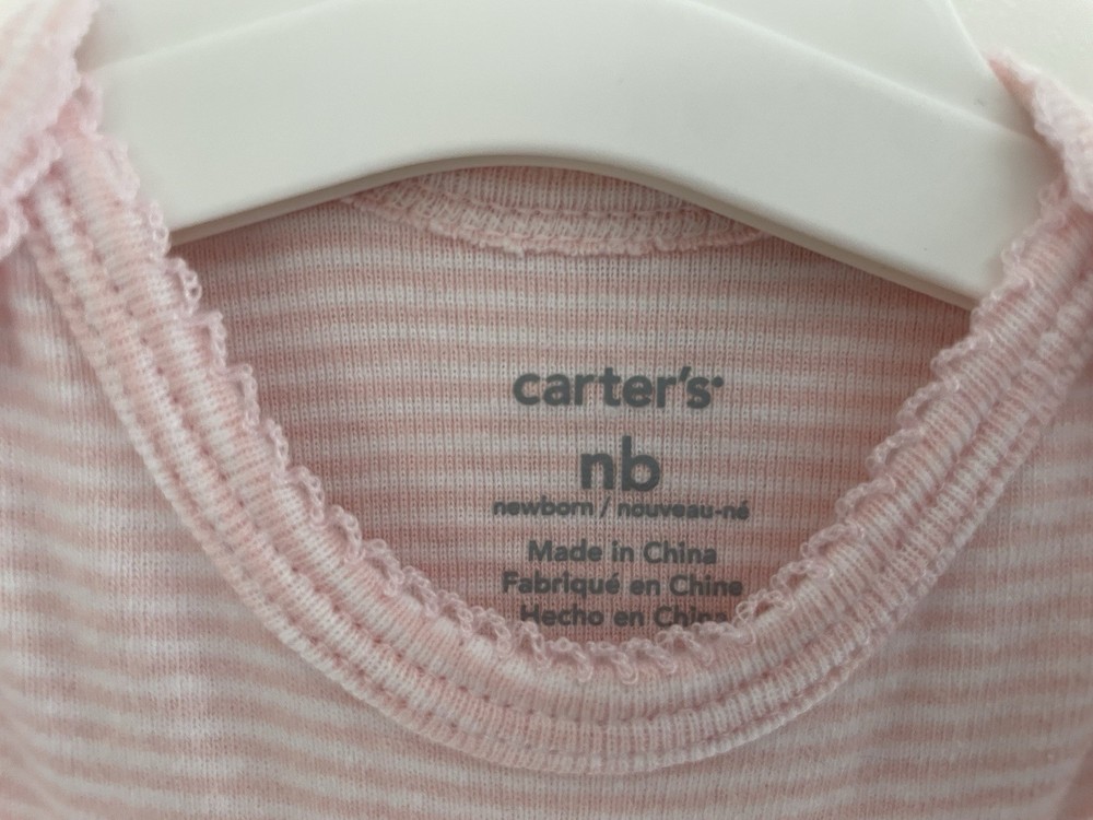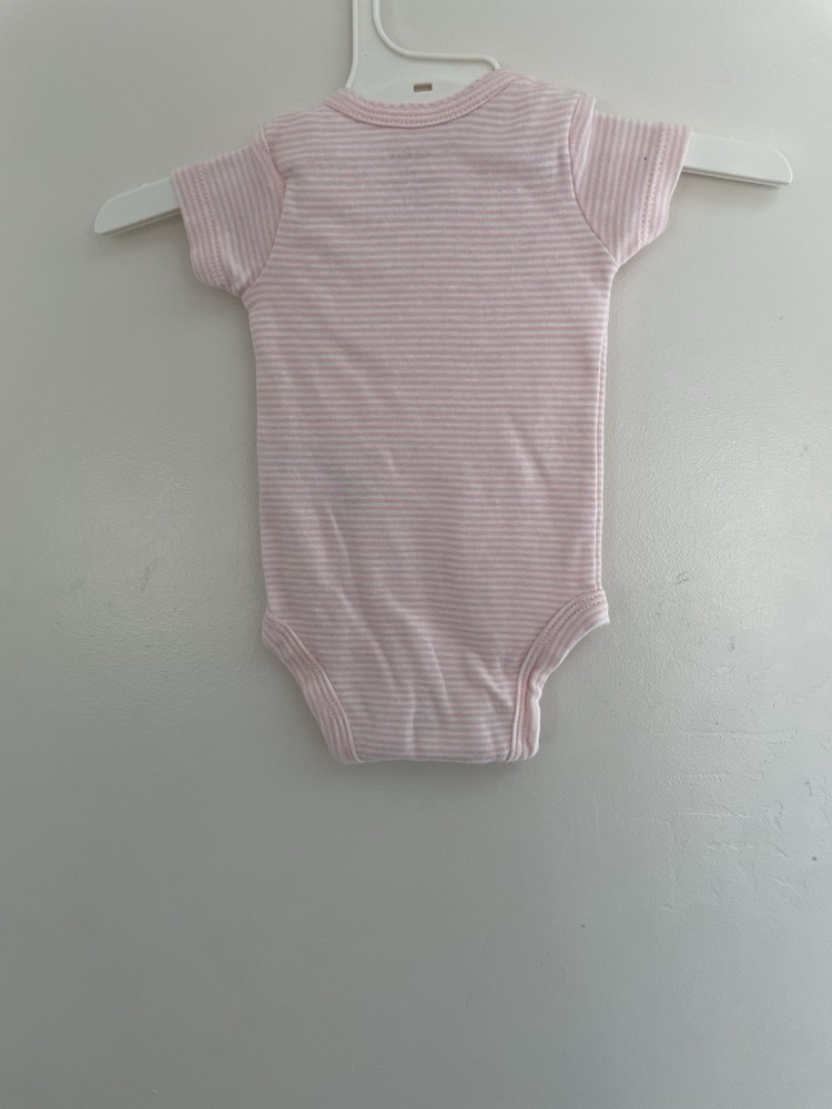 Carters Baby Girl Classic Striped Lace 100% Cotton Short Sleeve Bodysuit Pink NB. Condition is pre-owned. Smoke free, pet free home. Shipped via USPS Ground Advantage. In very good condition. Free of rips or stains.